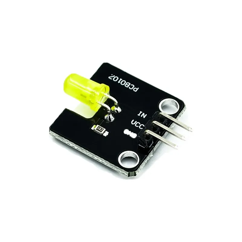 Imagine enhancing your electronic projects with this sleek and colorful LED lamp bead module. Its compact 21x28mm black circuit board provides a modern, organized look, featuring crisp white text and rounded mounting holes for easy integration. The module offers vibrant, transparent 5mm LEDs in five eye-catching colors: blue, green, red, yellow, and white, creating a lively visual effect. Perfect for microcontroller projects, it supports a voltage range of 3.3V to 5V and connects via a straightforward 3-pin interface (V, S, G). Its customizable design makes it suitable for various applications, from development boards to DIY electronic building blocks, all while offering reliable performance within standard operating temperatures.