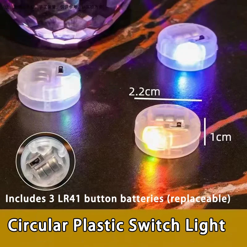Imagine transforming your decor with these vibrant, mini circular LED lights that bring a playful and lively atmosphere to any setting. Measuring just 2.2 centimeters in diameter and 1 centimeter thick, each light is made of durable plastic with a glossy finish that enhances their vivid colors. With a simple toggle switch, you can cycle through warm, white, yellow, green, and flashing color-changing modes, creating dynamic lighting effects perfect for parties, dollhouses, garden displays, or craft projects. Powered by three LR41 batteries, these lights emit bright illumination for up to six hours in white and warm modes, and around one hour in colored flashing mode, offering flexible usage for different occasions. Their semi-transparent casing allows internal circuitry to faintly show, adding a subtle technological charm to their aesthetic appeal.