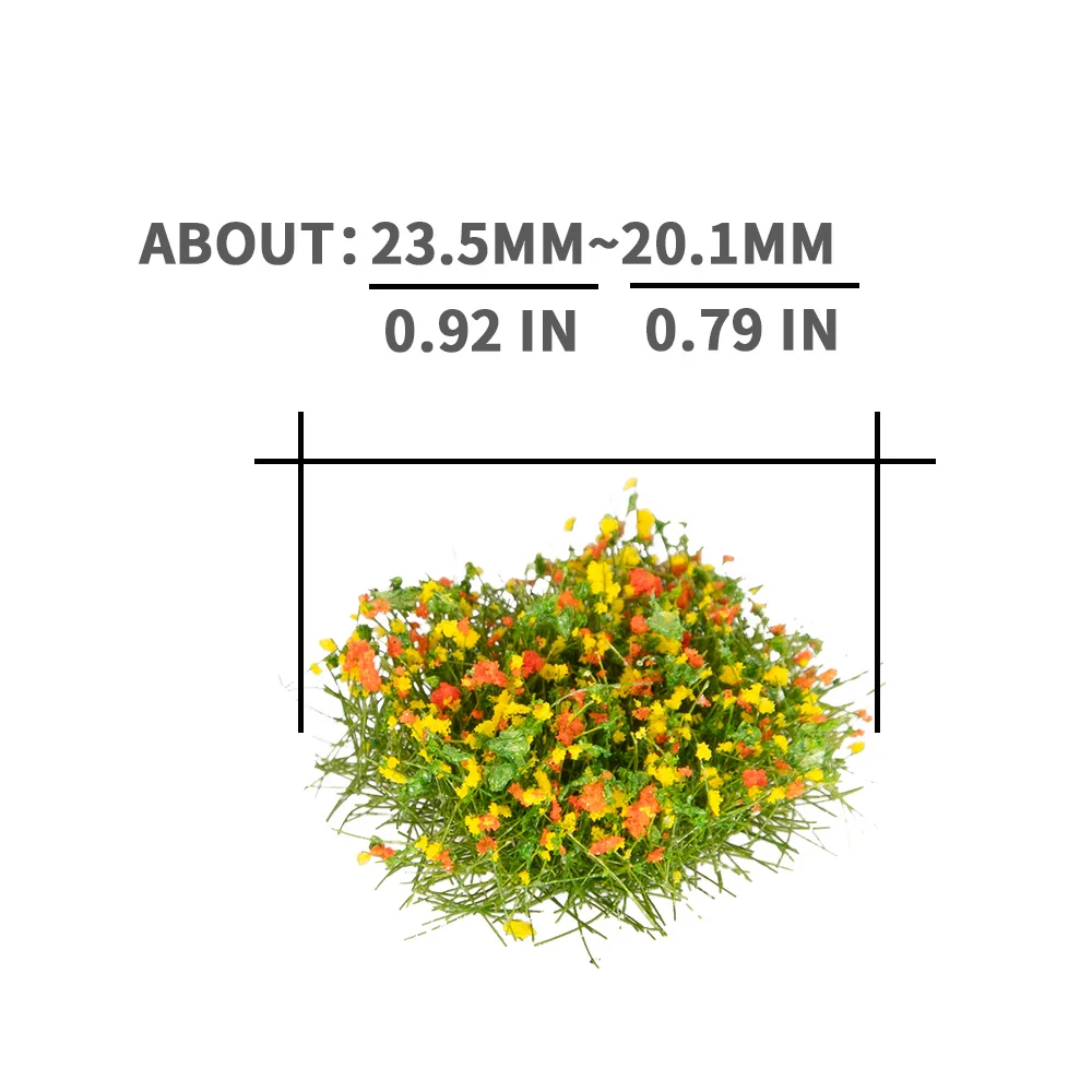 Transform your miniature scene into a vibrant, lifelike landscape using these colorful, detailed bushes. Each tiny shrub features a rounded, slightly flattened dome shape with textured foliage that mimics tiny leaves and flower clusters. The variety of bright greens, oranges, reds, purples, yellows, and whites create a natural, seasonal effect, making your model scenery pop with color and realism. Crafted from plush, flocked material, these bushes have a soft, plush texture that enhances their miniature appearance. Perfect for creating lush gardens, scenic railway layouts, or military dioramas, they add depth and authenticity to any miniature setting. Their detailed design ensures they seamlessly blend into your landscape for a convincing miniature world.