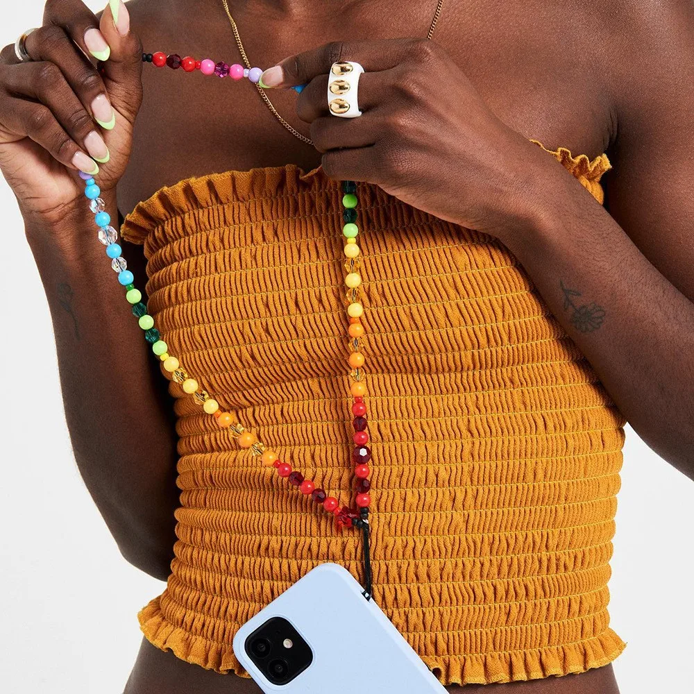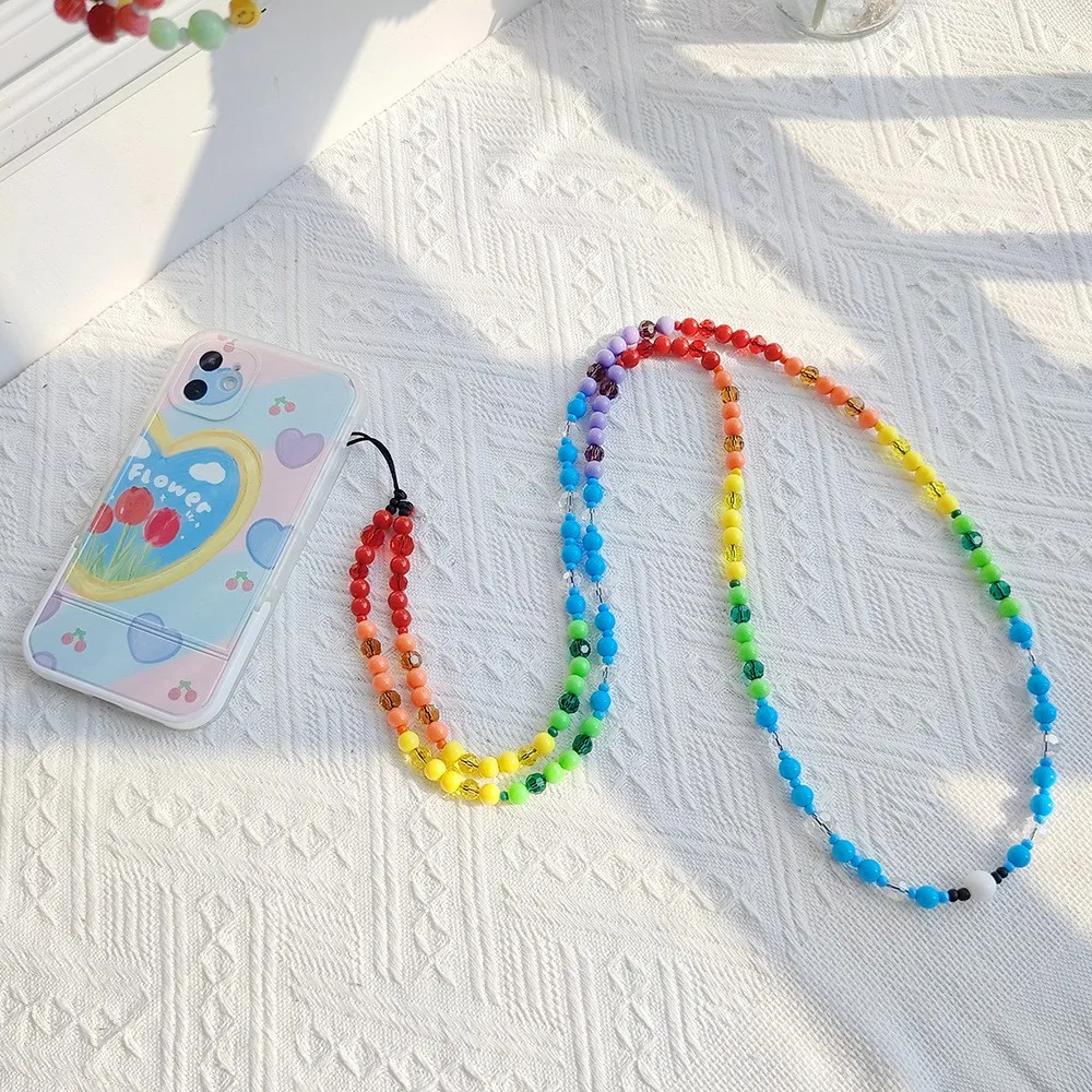 Enhance your style with this colorful Y2K-inspired phone charm strap, featuring transparent crystal beads on a trendy 32+5cm chain. Designed to be compatible with all mobile phones, this fashionable accessory adds a vibrant touch to your device, perfect for parties or everyday wear. Crafted with high-quality materials, it offers durability and a chic look that makes your phone stand out. Easy to attach and remove, this gemstone beaded lanyard combines style and practicality, helping you personalize your phone while making it conveniently accessible. An ideal choice for those who love trendy, eye-catching accessories that reflect their unique personality.