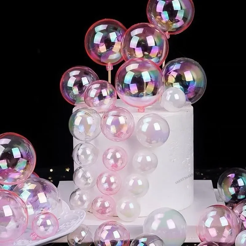 Imagine adding a touch of magic and brilliance to your celebration with this set of vibrant, pearlescent plastic balls. Designed to catch the light and reflect rainbow-like hues, these decorative spheres instantly elevate the look of your cakes and desserts. Available in three sizes—3cm, 4cm, 5cm, and 6cm—each set contains ten pieces, providing versatile options for any occasion. Crafted with durable, food-grade materials, they guarantee safety and reuseability, making your party not only beautiful but also environmentally friendly. Whether it’s a birthday, wedding, or festive gathering, these stunning cake toppers will turn any dessert into a showstopper, impressing your guests with their luminous, eye-catching shimmer.