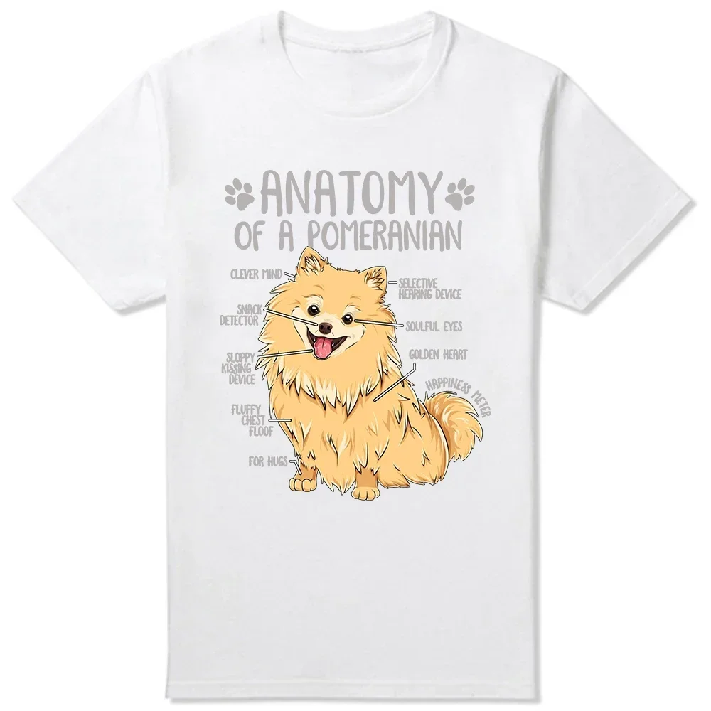 Imagine wearing this eye-catching T-shirt, showcasing a fun and colorful cartoon-style Pomeranian dog. The playful design, with detailed fluffy fur, golden tones shaded for depth, and a cheerful expression with its tongue out, instantly draws attention. Bold, grey typography at the top reads “ANATOMY OF A POMERANIAN,” framed by tiny paw prints, adding a humorous touch. Crafted from breathable cotton, it ensures you stay comfortable whether you're traveling or relaxing. Its casual style, combined with vibrant colors and witty labels, makes it perfect for expressing your love for pets while staying stylish. This T-shirt not only turns heads but also offers all-day comfort with easy care and durability, making it your go-to wardrobe piece.