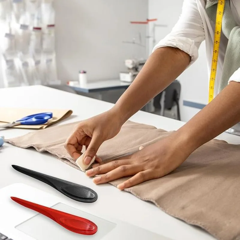 Enhance your sewing and quilting projects with this versatile set of tools designed for accurate seam creasing, fabric manipulation, and paper trimming. Available in striking white, black, and red options, these tools feature sleek, elongated shapes with a lightweight plastic construction for easy handling. The smooth glossy finish adds a modern touch, while the ergonomic oval grips ensure comfort during extended use. Whether you're pressing seams, adjusting machine settings, or trimming paper, these tools offer precise control and reliability. Perfect for experienced crafters seeking functional simplicity, each item in this set is crafted to improve your workflow and bring your creative vision to life effortlessly. Make your sewing sessions more efficient today!