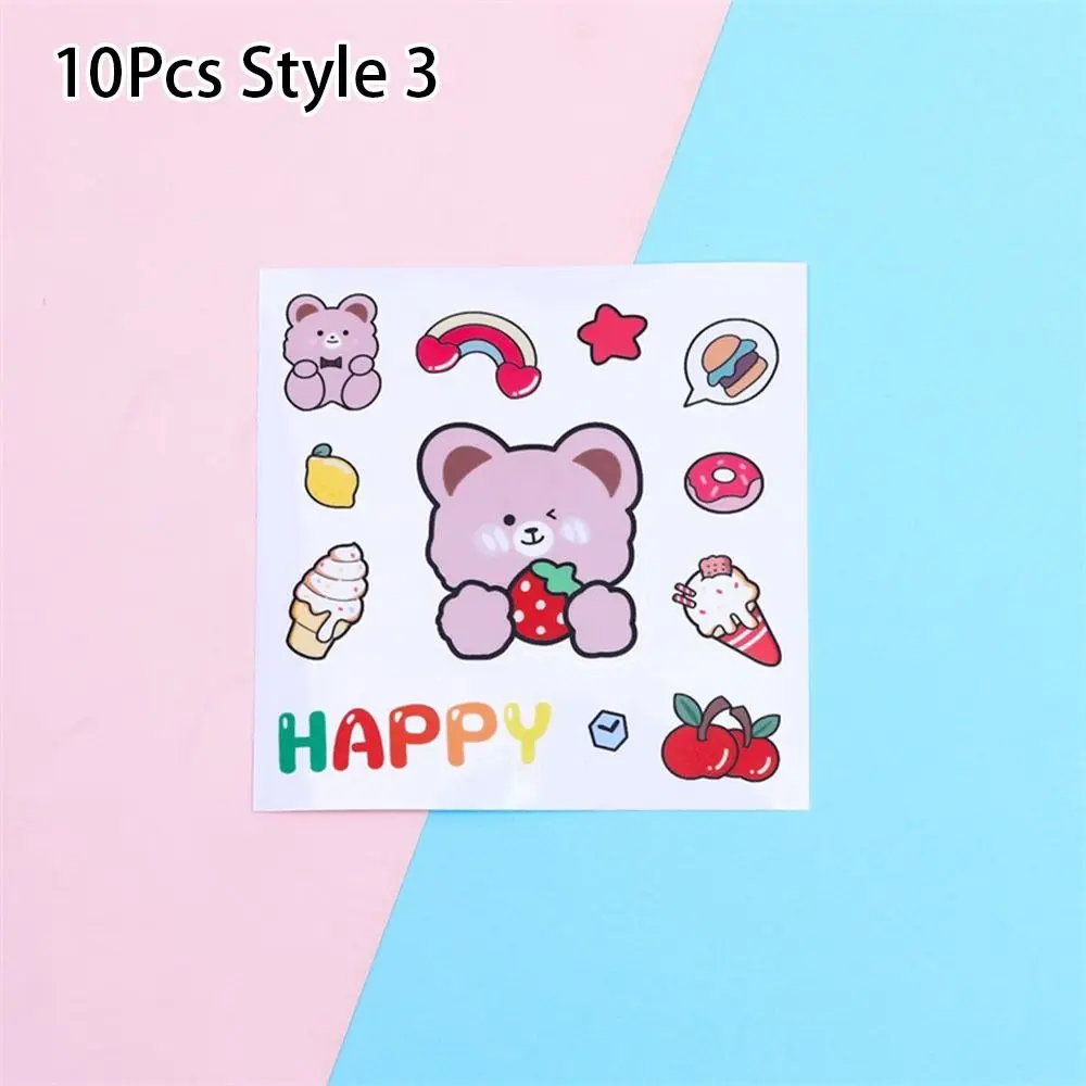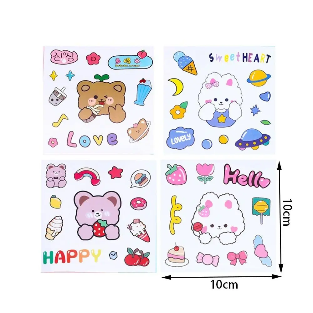 Enhance your personal decor with this set of 1 or 10 waterproof PVC sticker sheets, each measuring 10cm x 10cm and featuring vibrant, cartoon-style designs with over 1000 styles. Made from environmentally friendly PVC, these high-quality stickers boast clear, detailed prints and a glossy finish that withstands water and wear. Their self-adhesive, repositionable design allows for multiple placements without leaving marks, making them perfect for decorating notebooks, phones, water bottles, refrigerators, walls, and more. Choose from various styles to add cheerful, colorful, and playful touches to your everyday items, creating a fun and lively atmosphere.