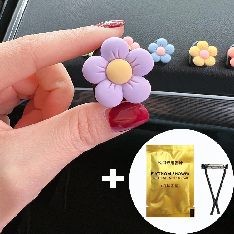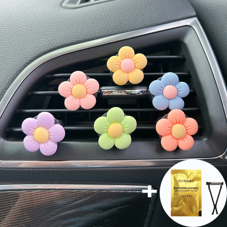 Transform your driving experience with this adorable resin car air freshener, designed to brighten up your vehicle’s interior. Featuring a playful cartoon flower shape, it adds a cheerful and charming touch to your car decor. Available in vibrant pastel colors—purple, yellow, pink, green, orange, and blue—these decorations combine modern style with whimsical appeal. The easy-to-install clips fit securely onto air vents, effortlessly blending functionality with cute aesthetics. Plus, the integrated grooves allow you to add aromatherapy tablets, so your car stays fresh and inviting. Whether you opt for a single piece or a multi-pack, this air freshener makes your car feel more personalized and lively every day.