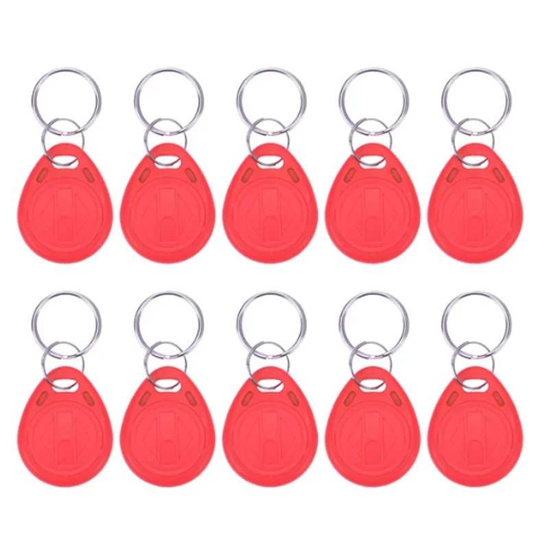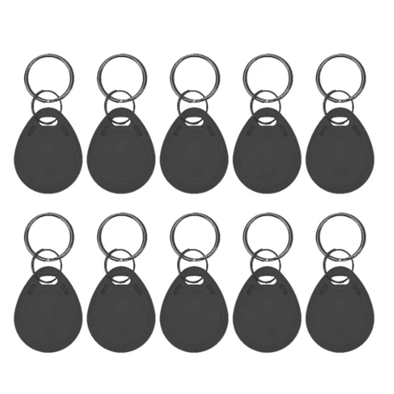 Enhance your access control system with this set of ten durable RFID key fobs, each measuring approximately 43.7 x 30.5 x 5.3 mm and made from waterproof ABS material. Featuring a 125 KHz response frequency with TK4100/EM4100 chips, these keychains are read-only, with a laser-printed unique ID, and a sensing distance of 0-5 cm. Designed for reliability, they can withstand up to 100,000 cycles of erasure, operate in temperatures from -40°C to 85°C, and include color options such as red, pink, mixed, purple, gray, blue, green, yellow, and black. Perfect for access, identification, and ticketing applications.