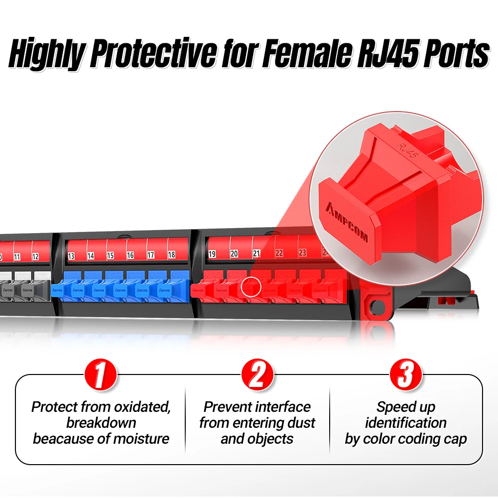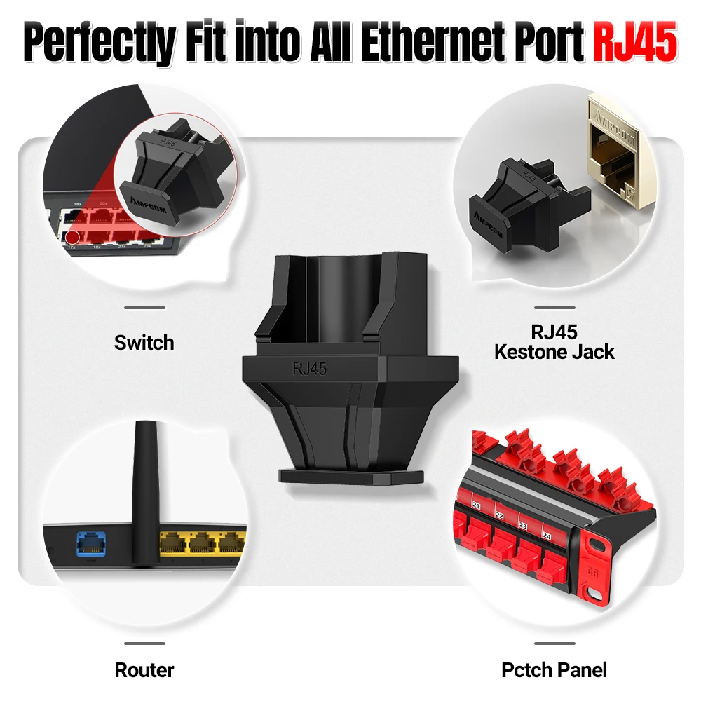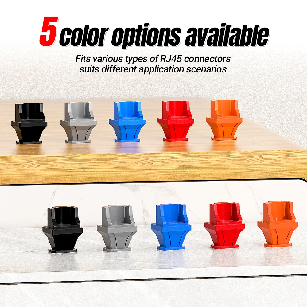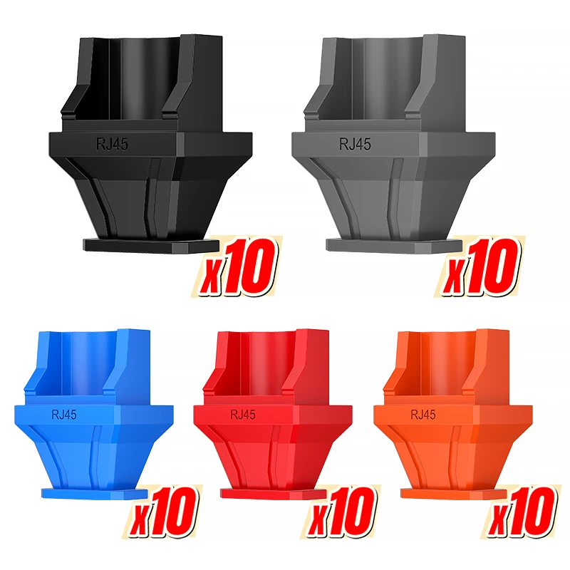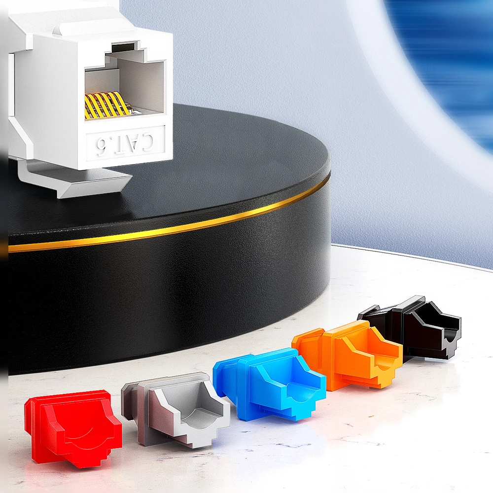 Enhance your network port protection with this set of 50 colorful RJ45 protective covers, available in blue, red, black, grey, orange, and five-color options. Made from highly durable, UV and oxidation-resistant PVC, these covers feature a soft PVC insert for a snug fit on Ethernet ports of switches, routers, patch panels, and devices like laptops, desktops, smart TVs, and digital printers. Their ergonomic, snap-in design ensures easy installation and removal, effectively preventing dust, debris, moisture, and port oxidation while maintaining excellent electrical insulation. Ideal for versatile networking environments, these RoHS-certified caps provide reliable, long-lasting protection for your valuable Ethernet connections.