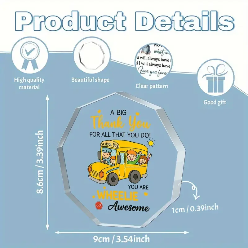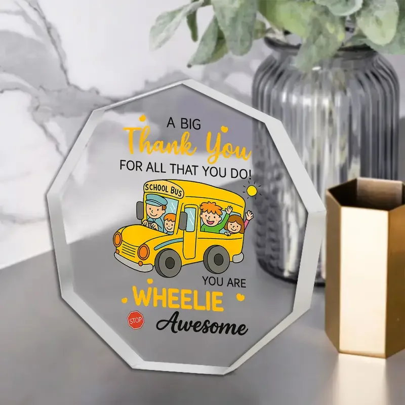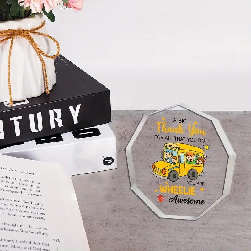 Envision the smiles and appreciation when your bus driver or favorite educator receives this colorful, meaningful plaque. It’s more than just decor—it's a tangible expression of gratitude, crafted to leave a lasting impression. Purchasing this plaque means giving a memorable token that celebrates their dedication and brightens their day. Whether for a special occasion, recognition, or just to say thank you, this cheerful piece will surely be cherished, reminding valued individuals how much they are appreciated. Make someone's day special—add this vibrant acrylic plaque to your cart today!