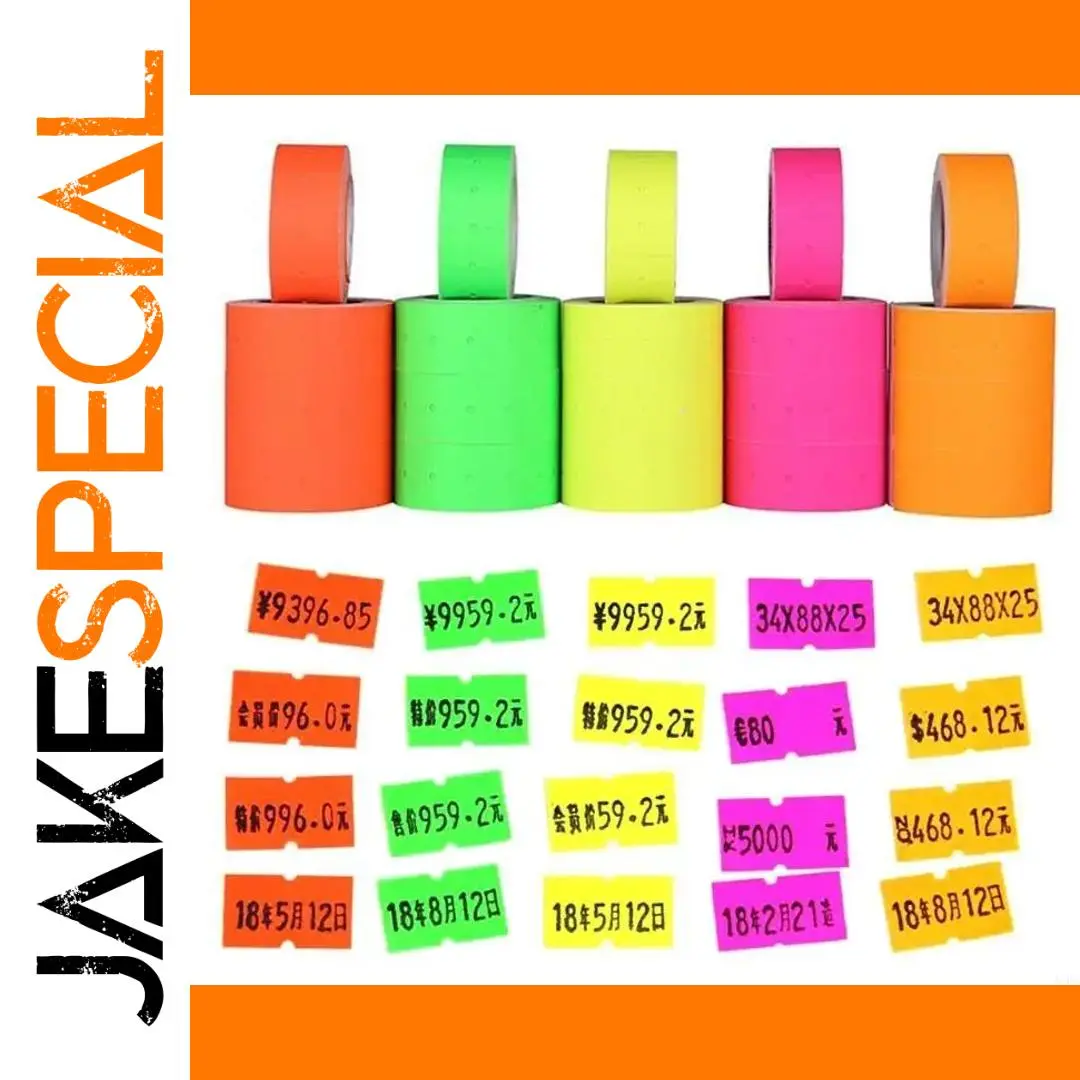 Enhance your retail labeling with this set of 500 self-adhesive color-coded paper labels, available in vibrant red, rose red, green, yellow, and orange. Each approximately 1.2 cm by 2 cm rectangular label features a matte finish for clear printing of prices, barcodes, or product details, making them perfect for use with MX-5500 labellers. Designed for convenience, these economical and practical labels are ideal for supermarkets and convenience stores, providing easy, quick pricing solutions. Crafted from safe, chemical-free paper, they are suitable for users over 6 or 8 years old. Elevate your store’s presentation and efficiency effortlessly with these bright, easy-to-use labels.