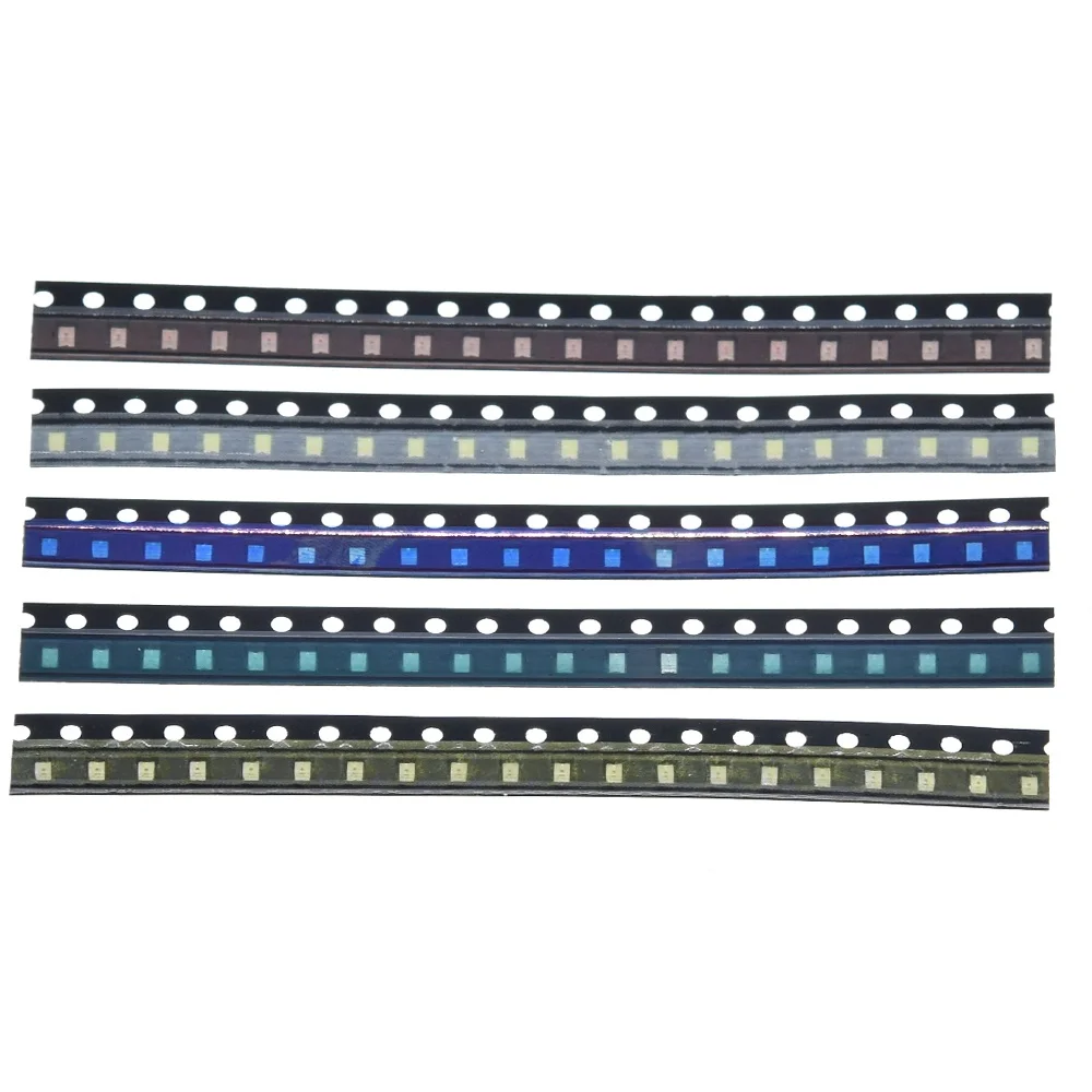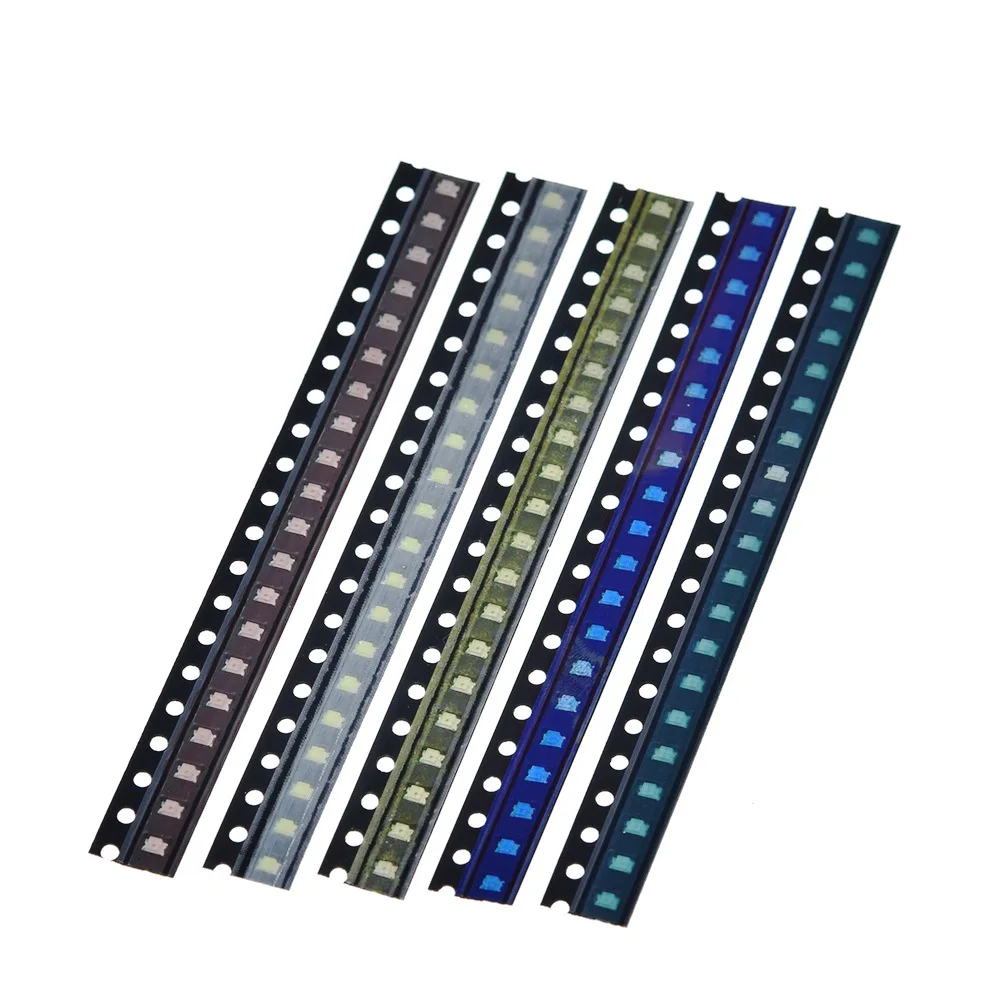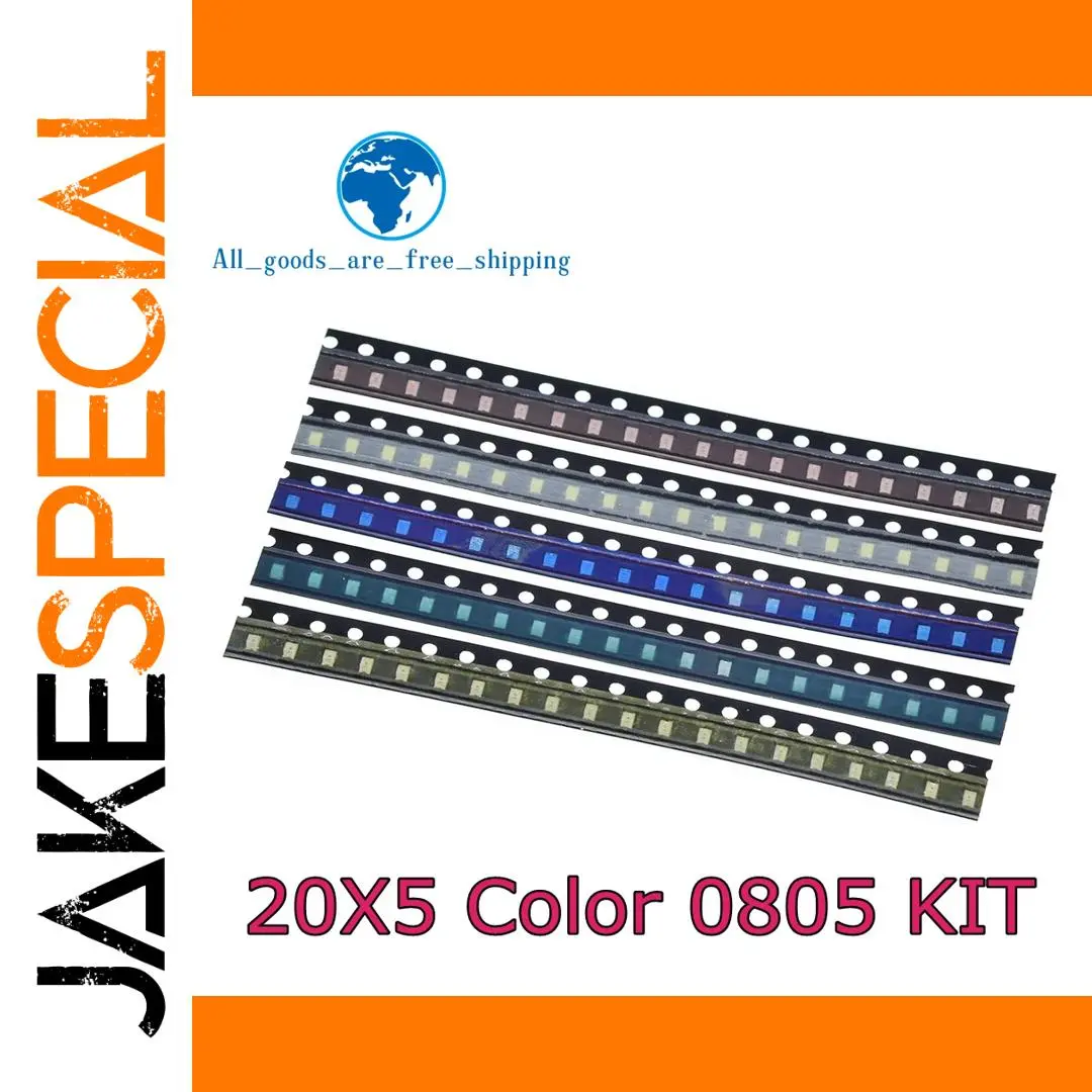 - Contains 100 water-clear SMD 0805 LED diodes in five vibrant colors: red, green, blue, yellow, and white, perfect for diverse lighting and indicator applications.