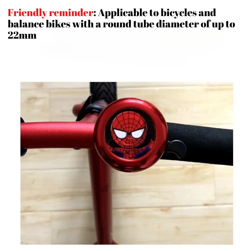 Enhance your child’s bike with this vibrant cartoon-themed bicycle bell, featuring a playful Spider-Man design with a glossy red finish, large white eyes, and web pattern. Perfect for handlebars up to 22mm in diameter, it comes in five colorful options (01-05), making it suitable for children aged 3 to 12 years. Crafted without high-concern chemicals, this CE-certified, stock-ready bell is compatible with MTB and mountain bikes, offering a fun and safe warning signal for young cyclists. Its sleek, rounded shape adds a cheerful touch to any child’s bike, ensuring safety and style on every ride.