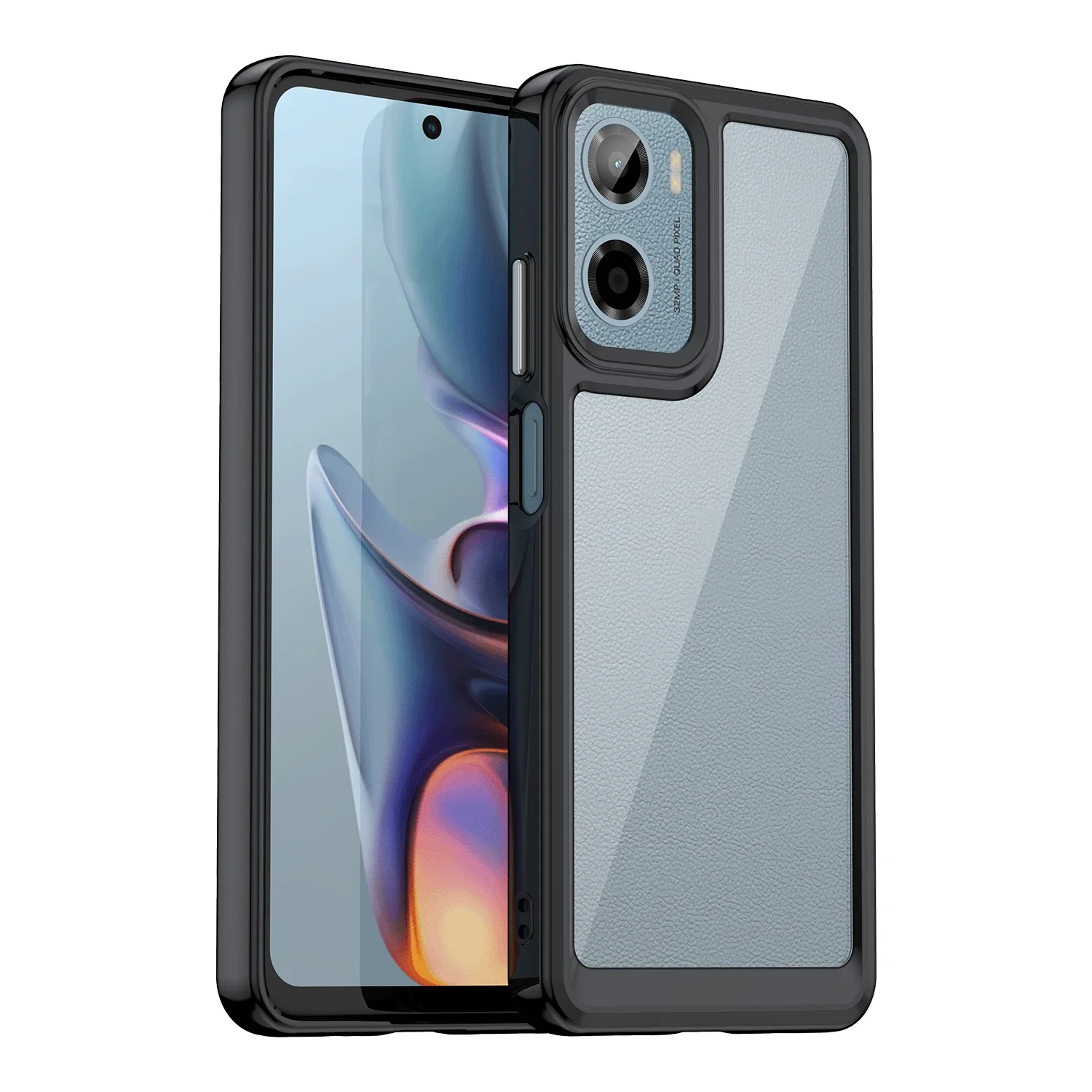 - This lightweight, transparent case showcases a semi-opaque, colorful overlay with a textured finish, delivering a sleek look that complements your Motorola device’s modern design.
