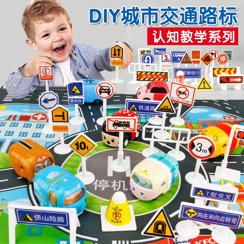 This colorful traffic sign set from this children's toy collection