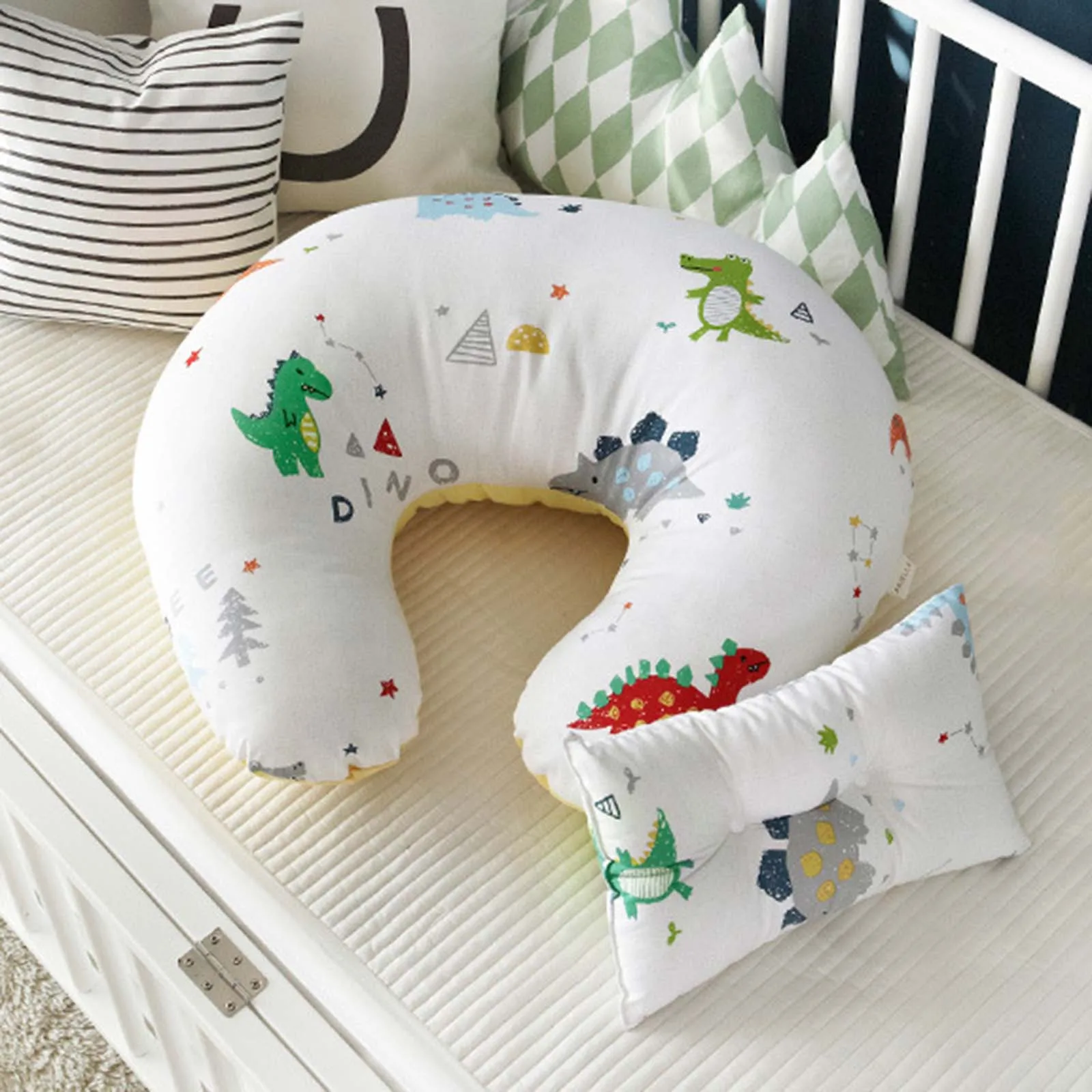 This colorful U-shaped nursing cushion for babies