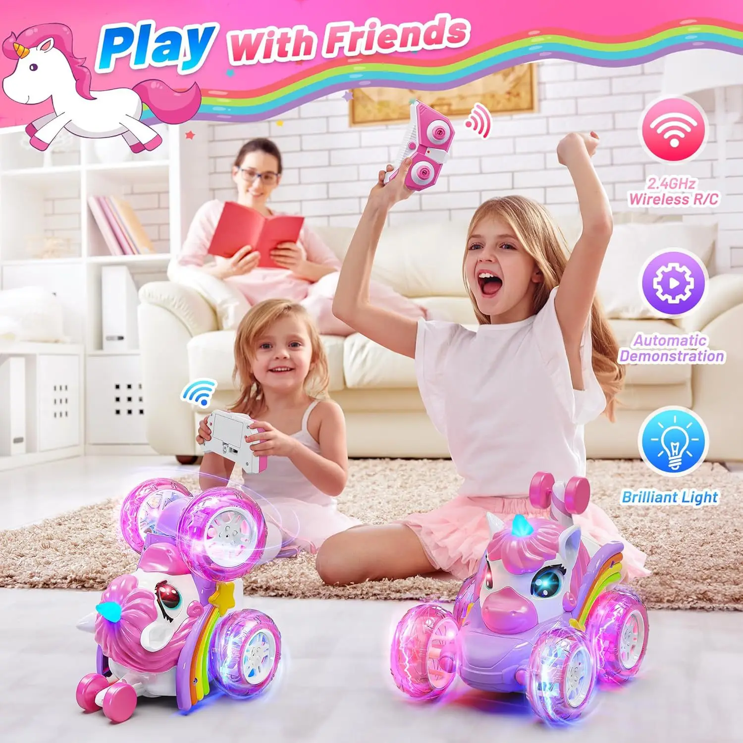 Bring joy and excitement to your collection with this vibrant pink remote control unicorn car, measuring 13.3 x 11.8 x 13.9 cm. Crafted from durable plastic, this adorable toy features a cute cartoon-style unicorn with a flowing pink mane, expressive eyes, and a rainbow-colored horn, perfect for capturing the imagination of children aged 6 to 12 and beyond. The car boasts light-emitting wheels with internal glow effects, creating a dynamic visual experience. Powered by a lithium battery (not included), it offers remote control functionality via a pink and white airplane-style controller. A delightful, colorful addition to any enthusiast’s collection of creative, fun, and lively toys.