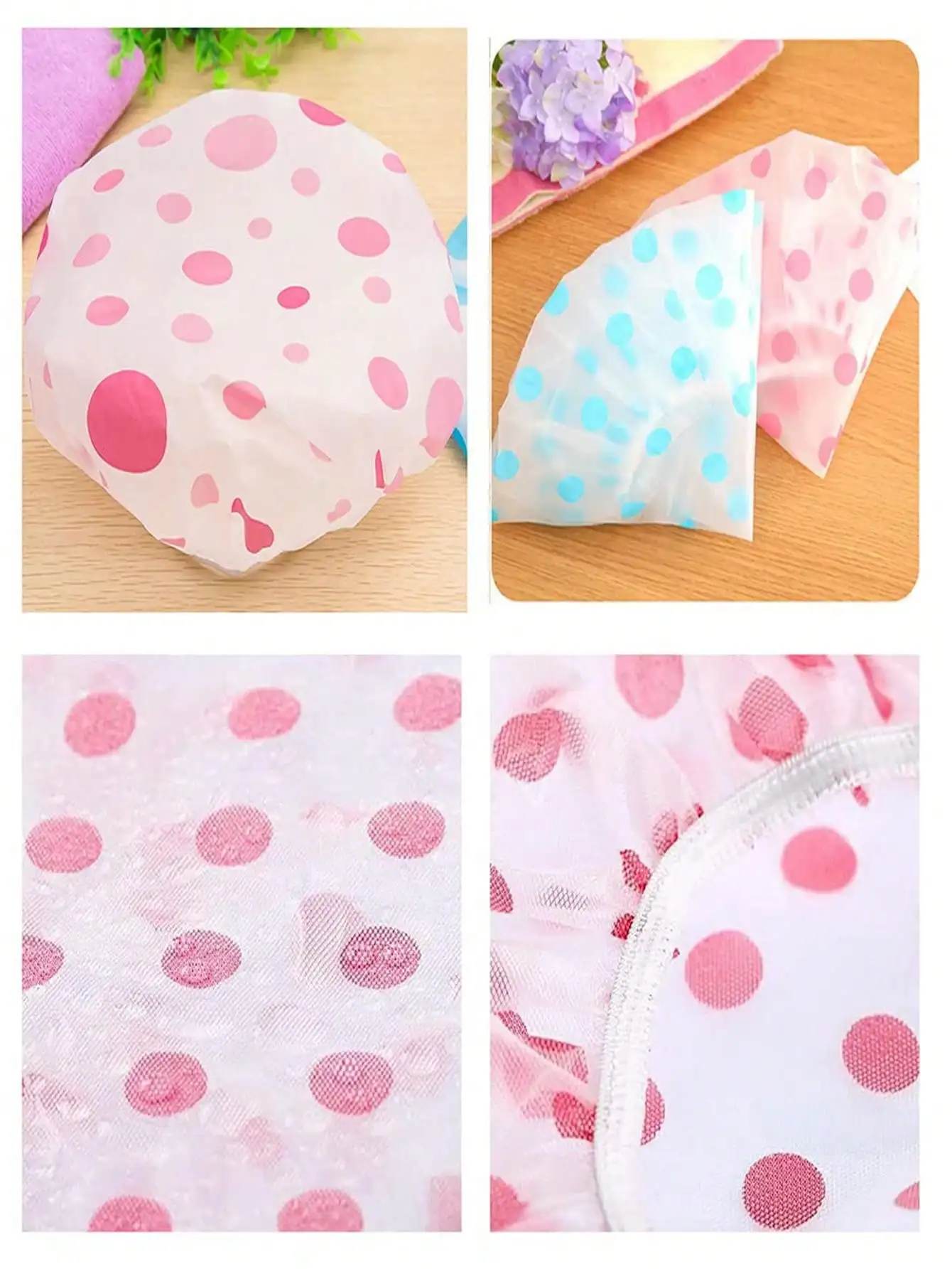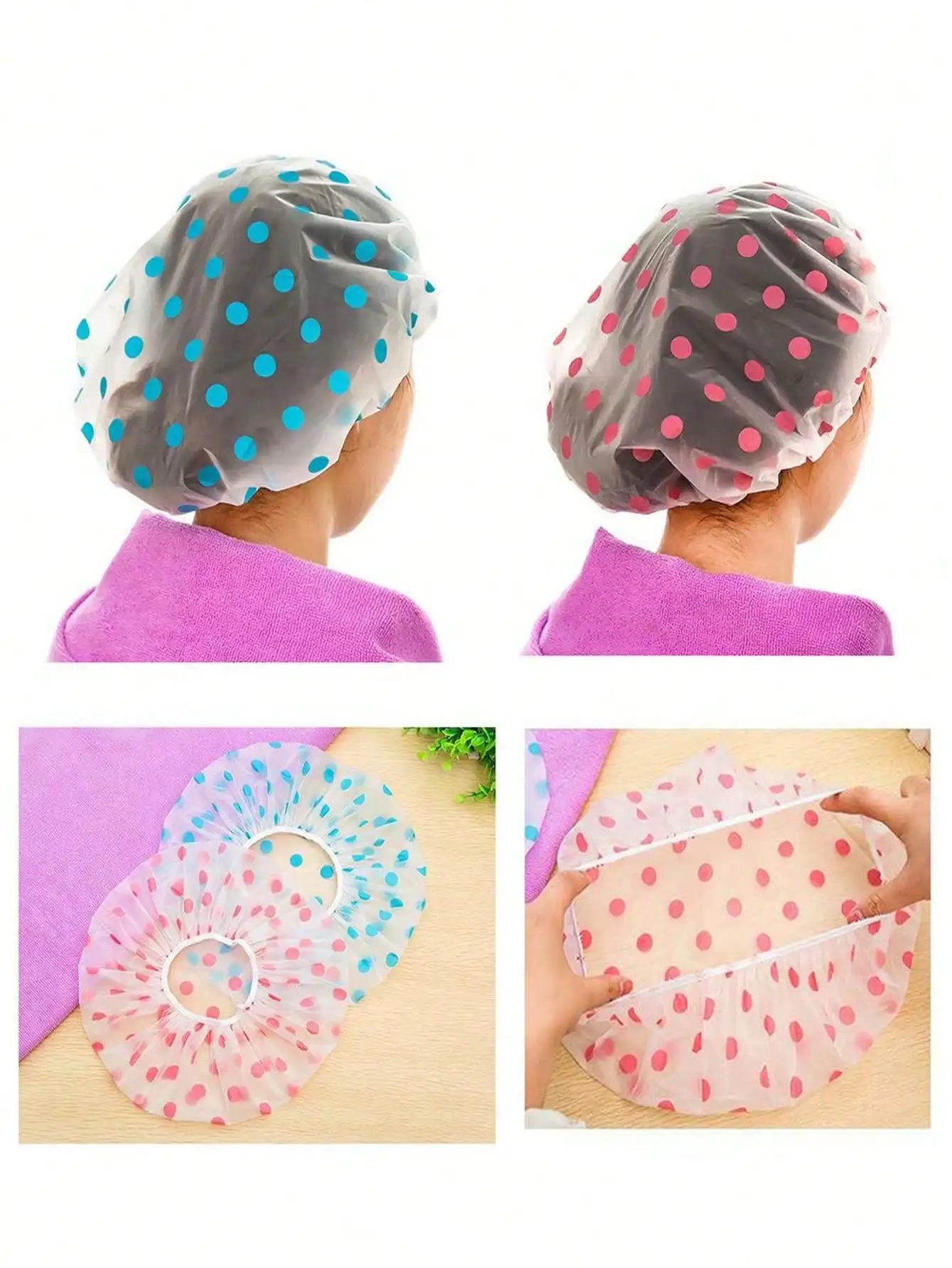 - Made from eco-friendly PE material, these caps are waterproof, oil-proof, and single-layer for reliable hair protection during showers or kitchen tasksp.