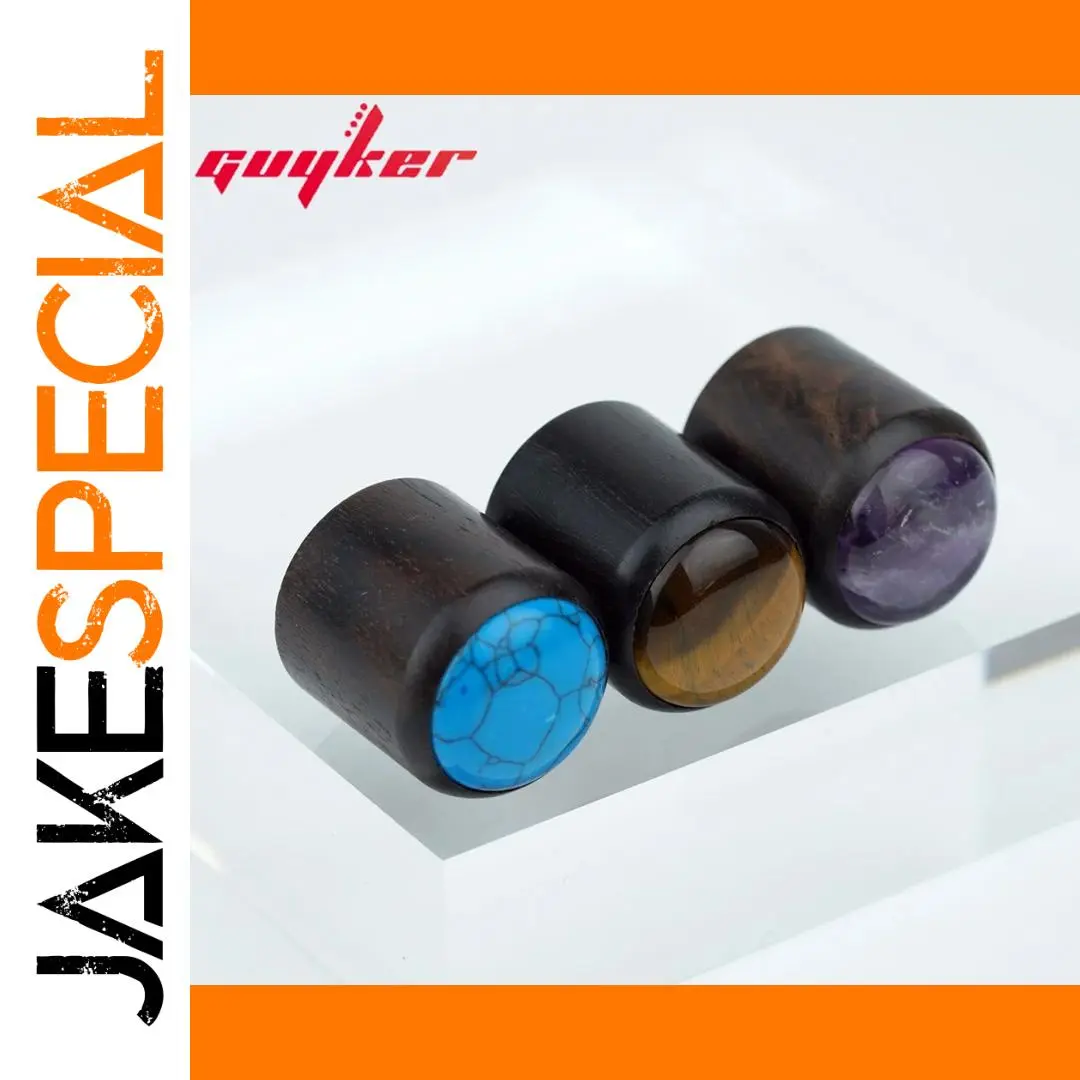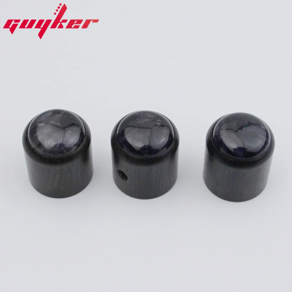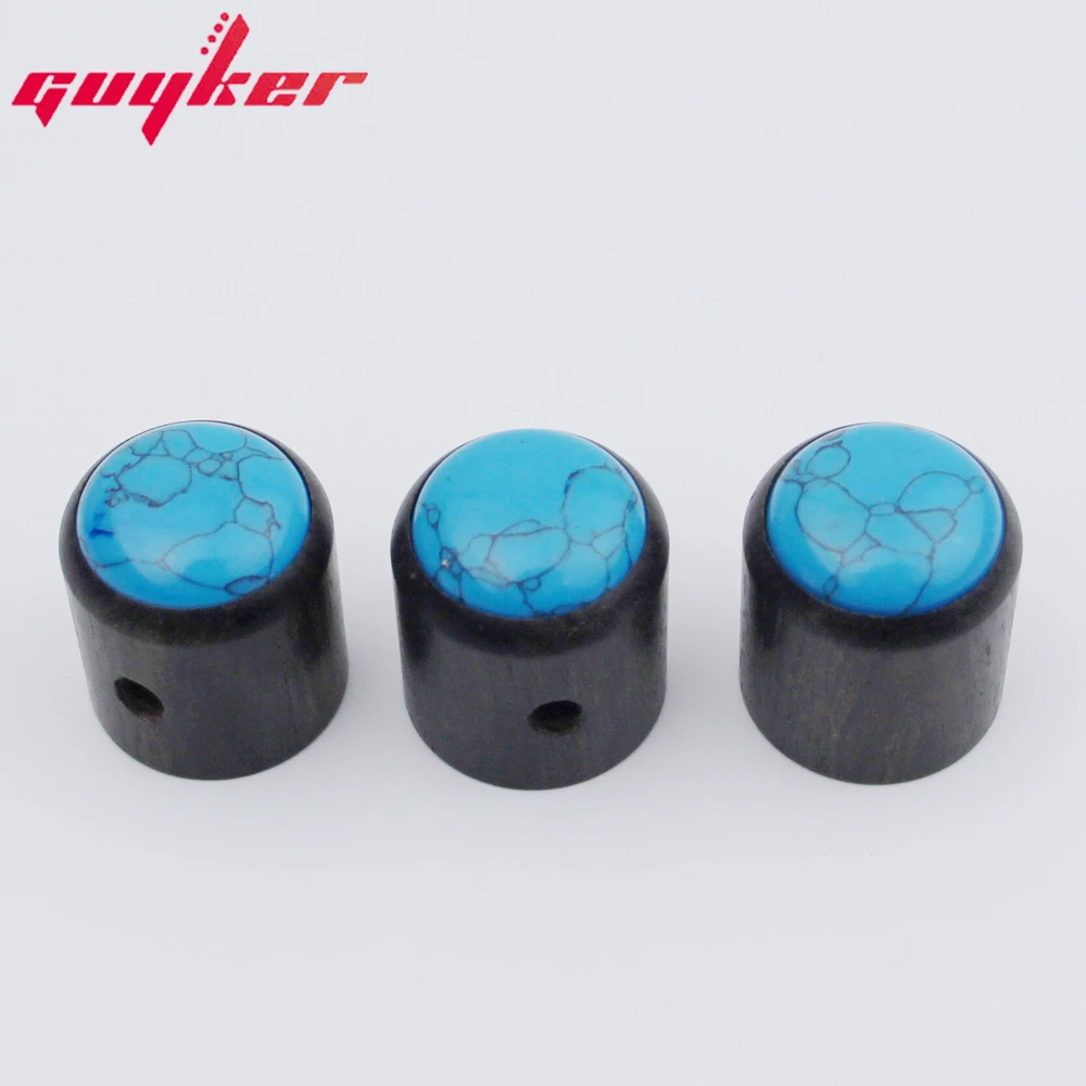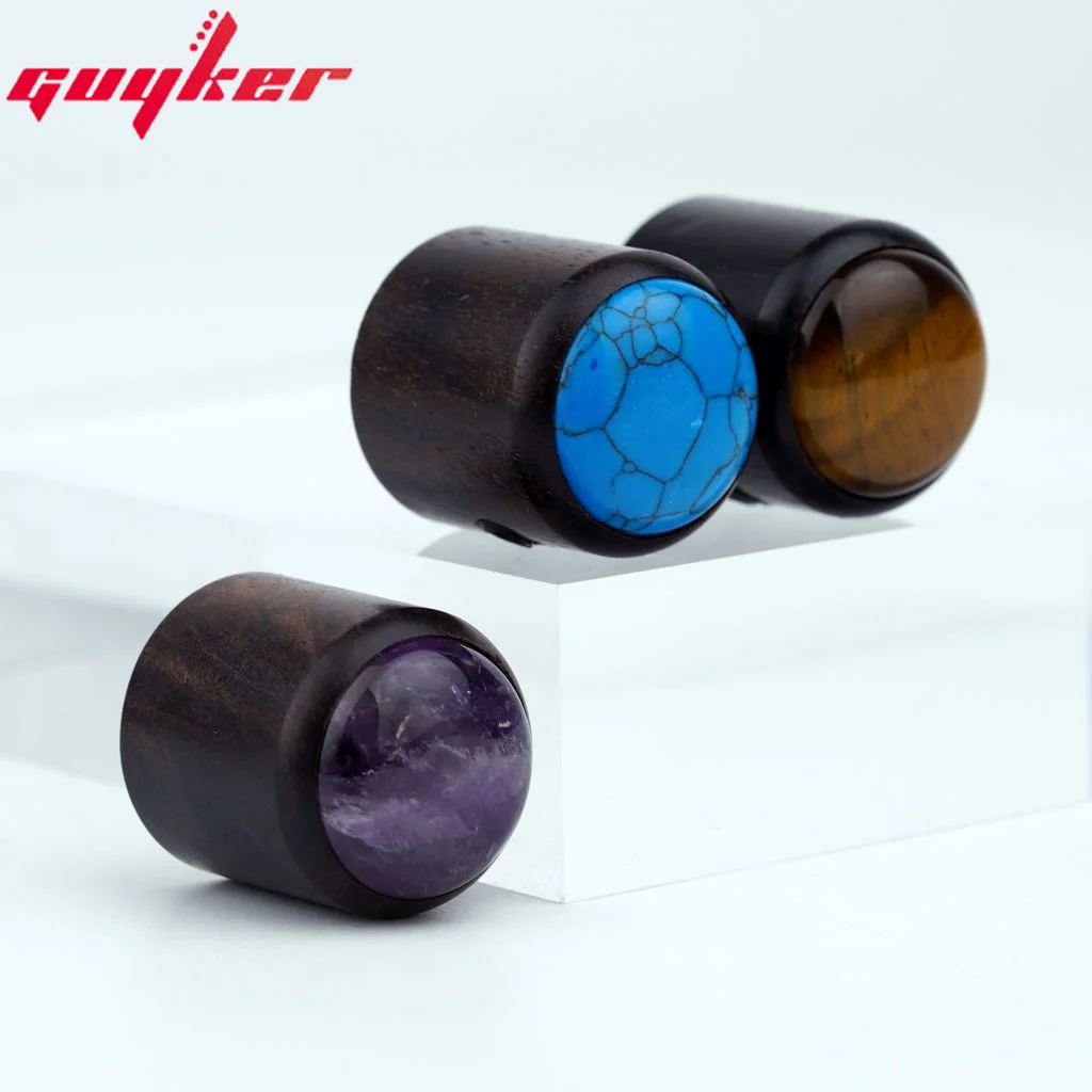 Transform your instrument's look with this exquisite set of three handcrafted wooden control knobs. Designed for electric guitars or basses, these knobs feature vibrant colors—HuYan (red), LanSong (blue), and ZiJing (purple)—each with a unique artistic surface pattern. The cylindrical shape with a rounded top offers a comfortable grip while adding a sophisticated touch to your instrument's aesthetic. The natural wood texture combined with vivid glazed or marbled finishes creates an eye-catching contrast. These knobs are easy to install on standard 6mm potentiometer shafts, enhancing both visual appeal and performance. Elevate your instrument’s style today, enjoying craftsmanship that shows your unique playing personality while ensuring reliable control over your sound.