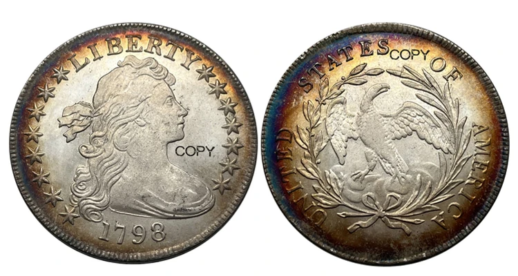 Imagine owning this exquisite piece that captures the grandeur of early American coinage. Its intricate design and authentic finish make it an ideal conversation starter or a thoughtful gift for history lovers. Perfectly suited to elevate your collection with a timeless, detailed replica—don’t miss out on adding this stunning homage to your array of collectibles. Take pride in showcasing this piece of American history—order now to experience its detailed craftsmanship firsthand.