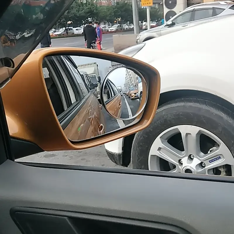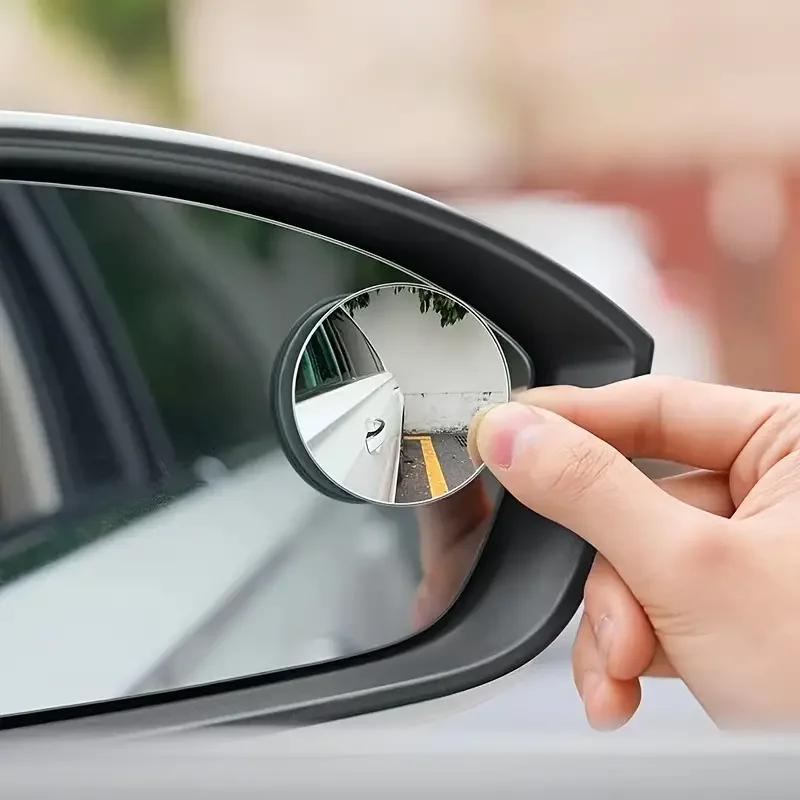 - Compact 50mm diameter convex mirror provides a broad 360-degree view for better awareness of your blind spots. Its size ensures discreet installation without obstructing your existing mirror.