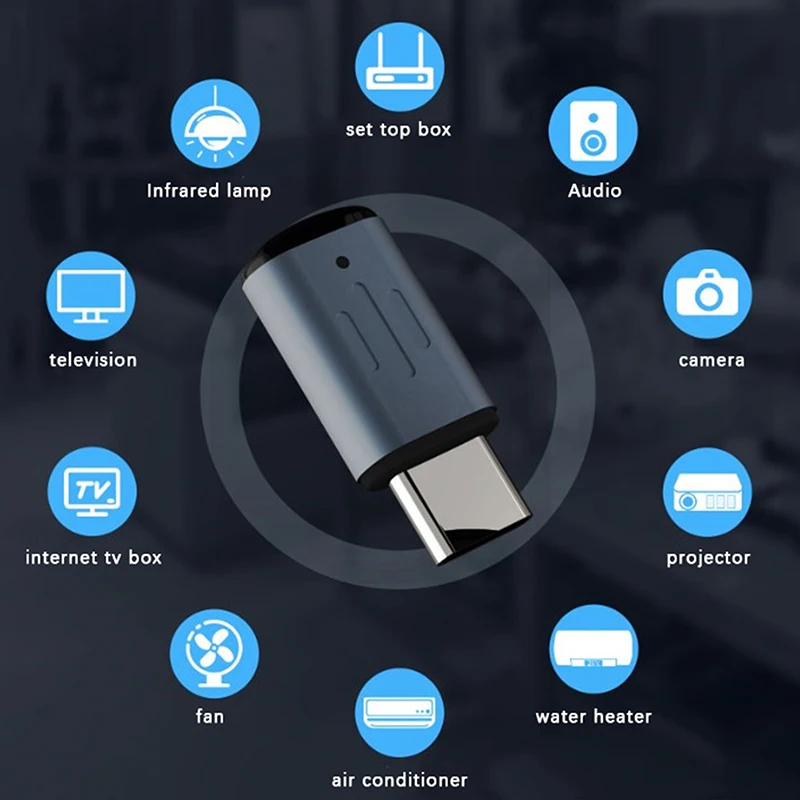 Experience effortless control with this sleek, minimalistic smartphone remote control designed for convenience and durability. Measuring just 2.6 cm in length, 1.1 cm in width, and 0.6 cm in thickness, this device slips easily into your pocket or bag. Made from high-quality aluminum alloy, it features a modern matte black or silver finish that exudes sophistication. The smooth cylindrical shape, complemented by subtle elongated grooves, highlights its elegant simplicity. The prominent metallic connector at the top is both functional and stylish, offering a durable connection point. Designed for easy wireless operation via infrared, this remote control pairs seamlessly with TVs, air conditioners, and other compatible devices. A perfect companion for effortless device management, anytime, anywhere.