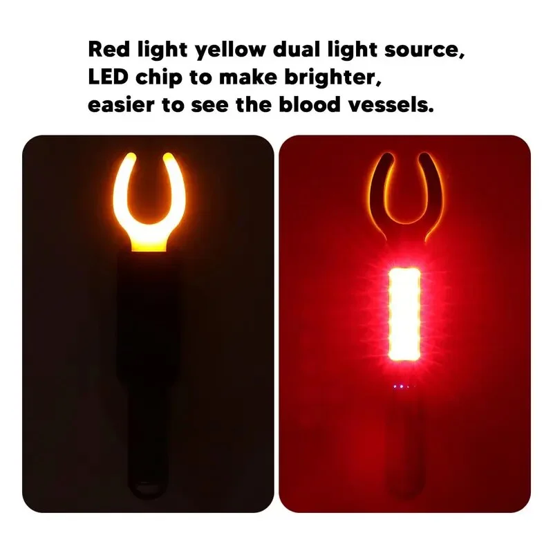 Experience precise vein localization with this sleek black handheld LED vein finder, weighing approximately 233 grams and measuring 218x40x40 mm. Crafted from durable ABS and PC materials, it features adjustable red LED light levels (low, medium, high) and a long yellow LED setting, controlled by an easy-to-use button. Powered by a rechargeable 3.7V, 500mAh lithium polymer battery, it connects effortlessly via USB Type-C to a computer, power bank, or socket for continuous use. Ideal for medical procedures, injections, and blood draws, this compact device offers professional accuracy, enhanced visualization, and a modern, high-tech appearance.