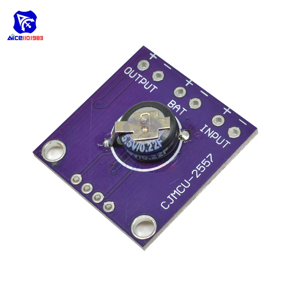 Experience efficient energy harvesting with this compact BQ25570-based solar energy collection module, designed for ultra-low voltage sources such as solar panels or thermal generators. Its sleek, rectangular PCB features a stylish purple solder mask complemented by crisp white silkscreen labels, creating a modern and professional appearance. Central to the board is a small black integrated circuit, surrounded by tiny surface-mount resistors and capacitors, all arranged neatly for optimal circuitry. The larger black cylindrical inductor and a compact orange-tan ceramic capacitor add functional and aesthetic accents. Its four mounting holes and matching pin headers make integration effortless. This module guarantees reliable power management, making it ideal for low-power applications such as wireless sensor networks, environmental monitoring, or portable devices.