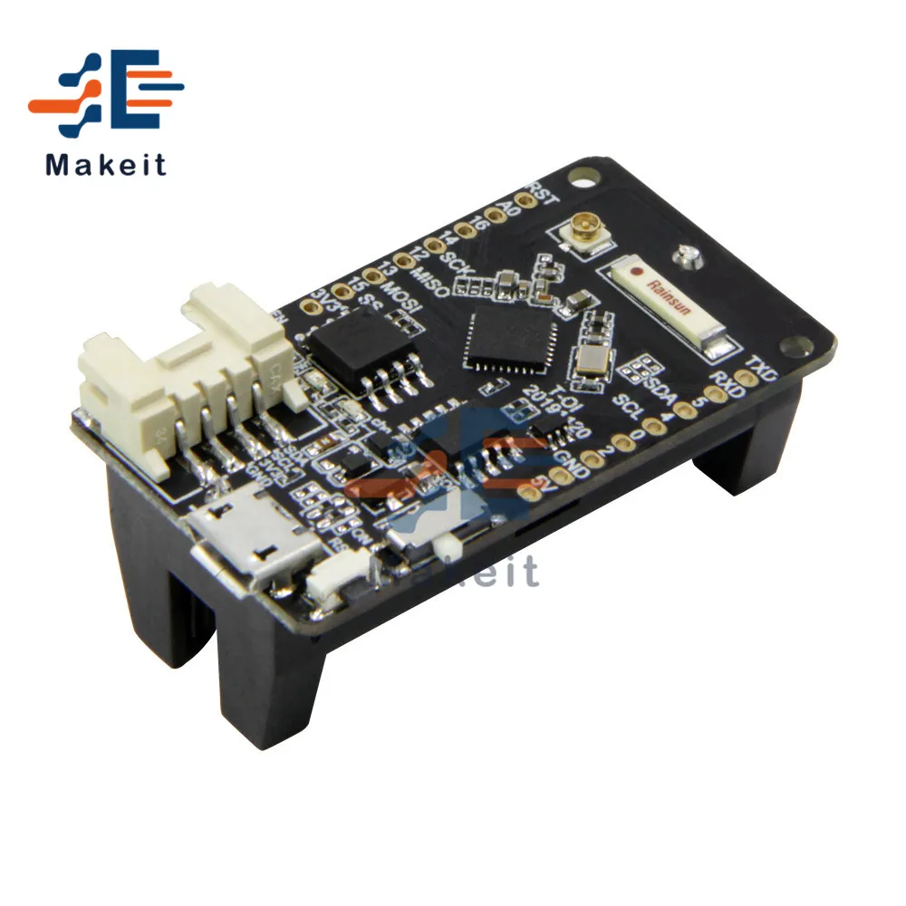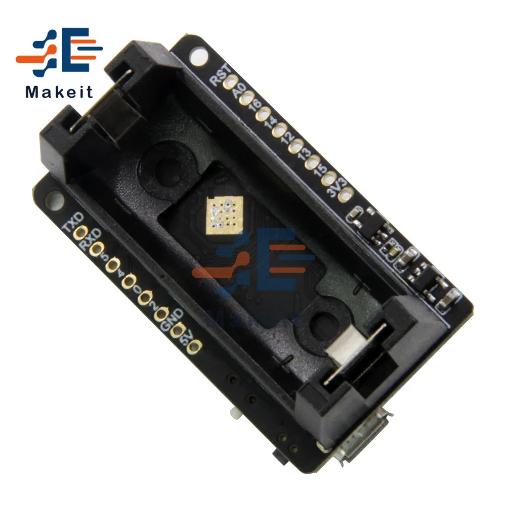 Experience seamless Wi-Fi connectivity with this sleek, compact ESP8266 development board module. Designed for makers, hobbyists, and professionals, it combines high-performance hardware with user-friendly features. Its dark, modern aesthetic with gold-edge connectors, a metallic shield, and neatly arranged components showcase craftsmanship and thoughtful engineering. The board's compact size makes it easy to integrate into projects, offering multiple I/O ports on both sides for versatile expansion. The built-in 3.7V rechargeable lithium battery holder and external antenna mount provide flexibility and portability, perfect for wireless IoT applications. Whether you're developing IoT sensors, automation, or remote control systems, this module makes your ideas come to life effortlessly.