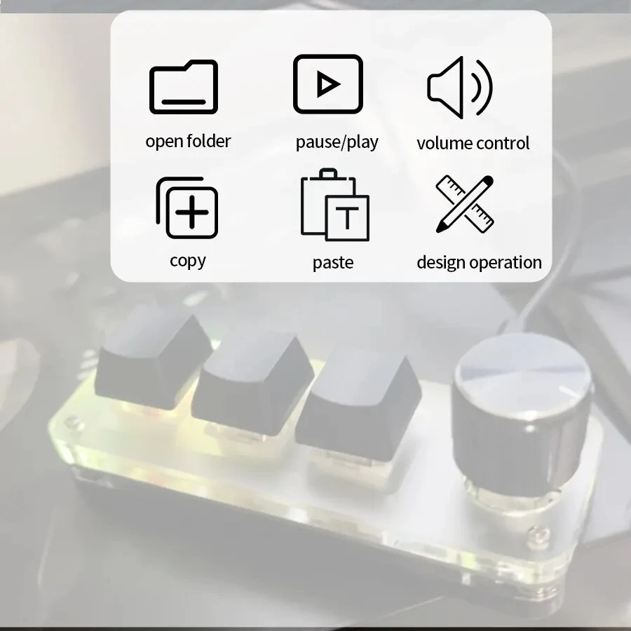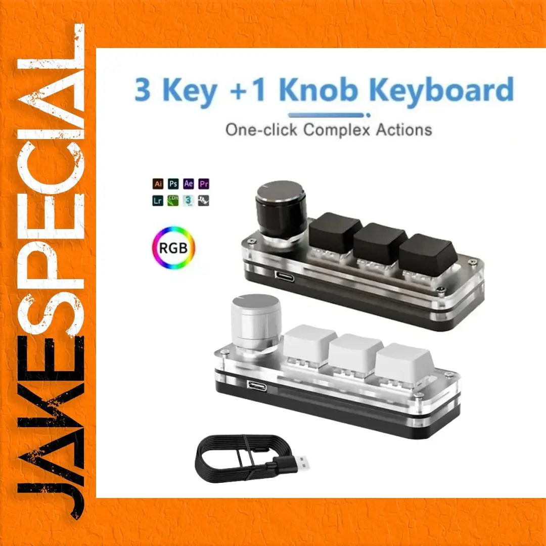 The Mini Keyboard features a compact 3-key layout with responsive red switches, delivering tactile feedback for enhanced typing speed and accuracy. It includes a customizable programming knob for effortless modification, while the vibrant multicolor backlight adds visual flair. Designed for wired connectivity via a Type-C to USB interface, it offers plug-and-play functionality with no drivers required. This mechanical keyboard supports hot-swapping of switches and keycaps for personalization, alongside a storage function allowing quick input of up to 5 characters. Available in Beige with bundle options in White and Black, it’s perfect for gaming, office work, music, and media multitasking.