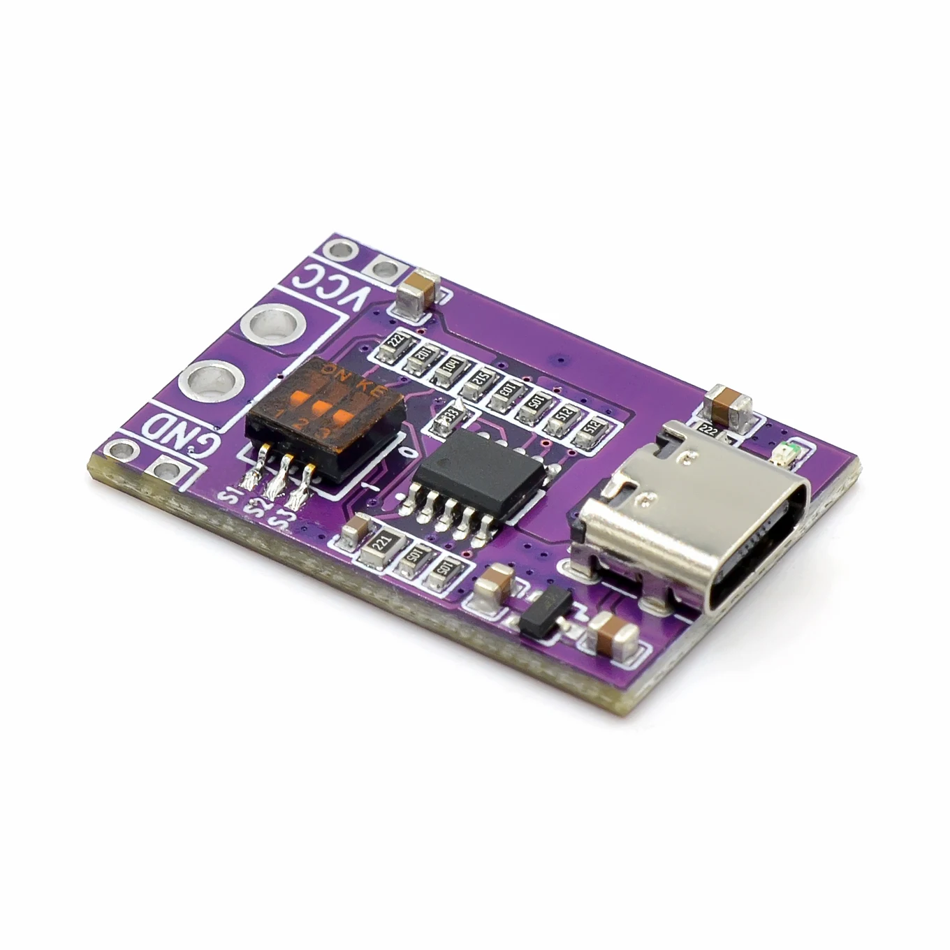 Experience seamless power management with this innovative decoy trigger designed for fast charging protocols. Its compact size of 3.1cm by 2cm and lightweight build of 2.9 grams make it ideal for integration into various electronic projects and systems. The device features a sleek purple PCB adorned with neatly organized surface-mounted components, including resistors, capacitors, and an integrated circuit, all clearly labeled for easy identification. The subtle orange rectangular component adds a splash of color, emphasizing its modern aesthetic. White silkscreen labels enhance clarity, while the gold-plated mounting holes provide a refined metallic touch. This module’s minimalist industrial style combines functionality and precision, making it an essential for reliable power triggering in advanced electronics.