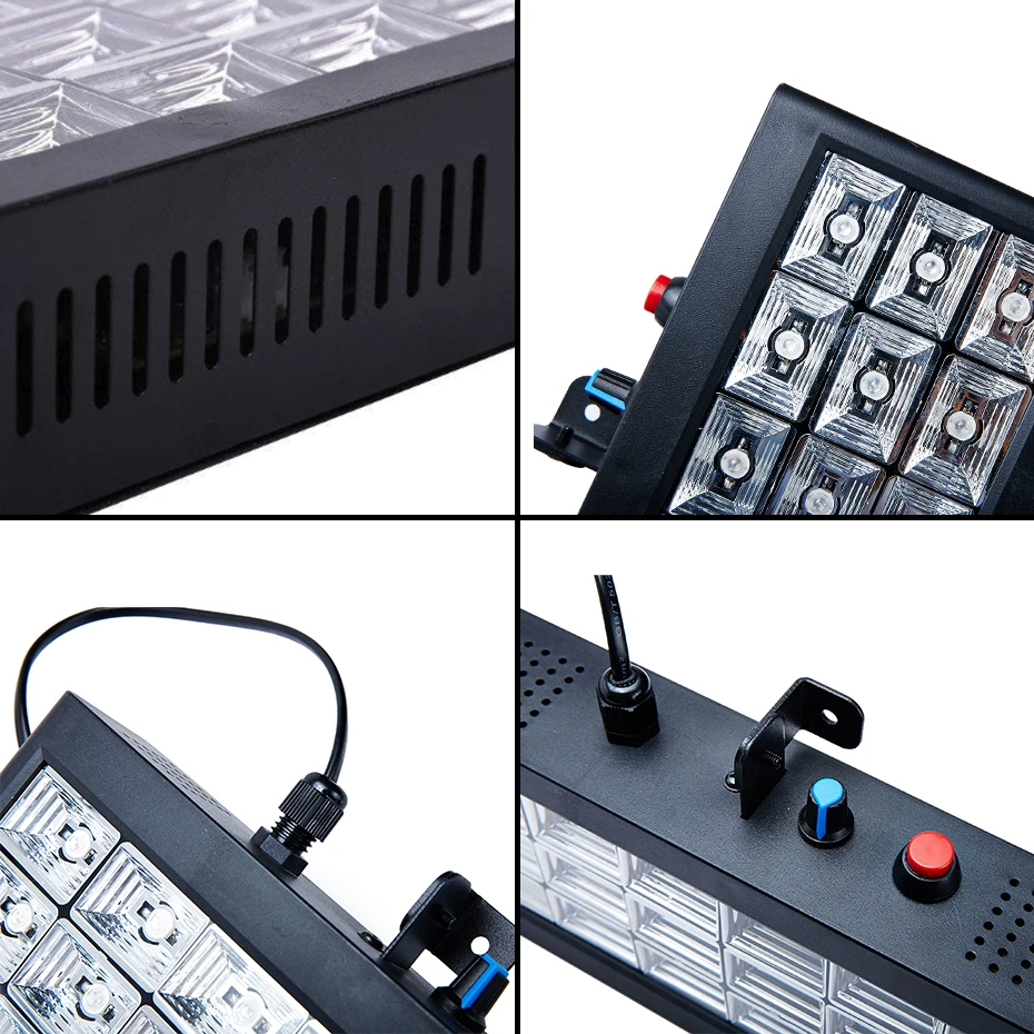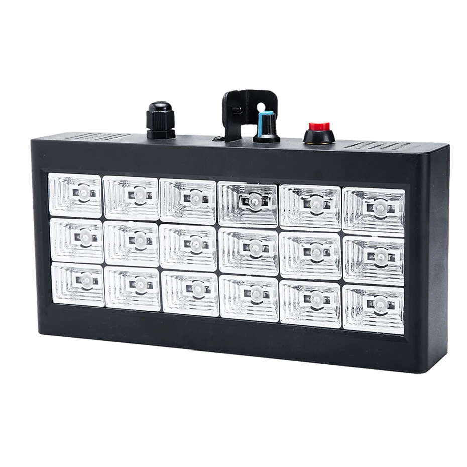 Experience vibrant lighting with this compact, lightweight stage light that transforms any indoor space into a lively party scene. Featuring 15 bright RGB LEDs arranged in a 3×5 grid, it creates dynamic, colorful displays capable of blending red, green, and blue shades for captivating visual effects. The sleek white option adds a modern touch, blending seamlessly with any decor. Designed for easy setup with a built-in, self-contained mounting bracket, it offers effortless installation in venues, homes, or event spaces. The sound-activated mode syncs flashing with music, and the variable speed knob allows you to adjust the rate for maximum impact. Its energy-efficient 20W power consumption guarantees impressive performance without high energy costs, making it ideal for various indoor occasions.