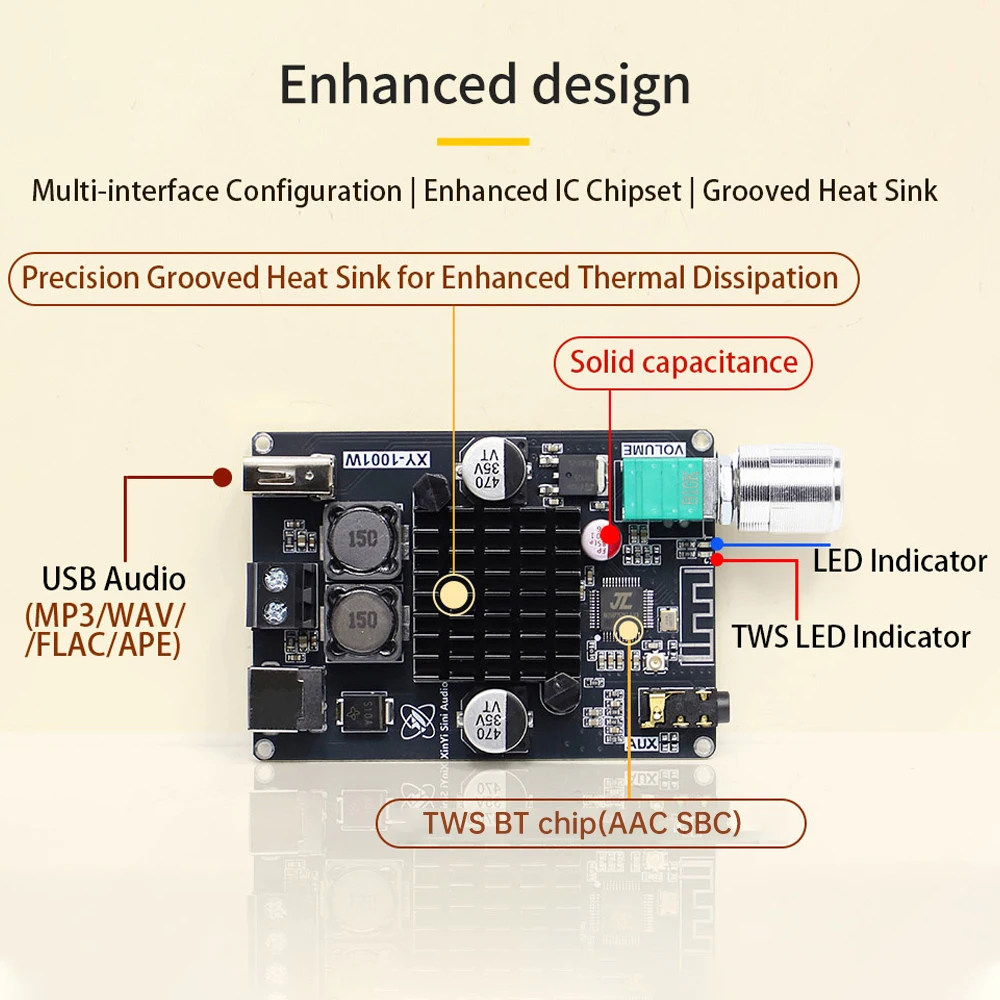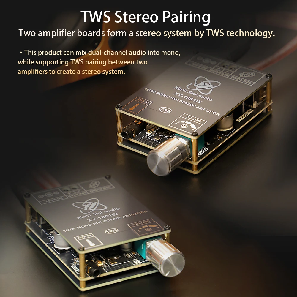 Picture yourself enhancing your entertainment setup with this powerful and stylish amplifier board, delivering exceptional audio performance. Whether for a DIY speaker project or upgrading your existing system, this device makes sound clarity and power accessible with a sleek aesthetic. Easy to integrate and customize, it promises satisfying results every time. Take advantage of its versatile inputs, high power output, and modern TWS stereo capabilities to elevate your listening experience. Experience the confidence of owning a high-fidelity amplifier built for both professional and personal use. Don't wait—transform your audio setup today!