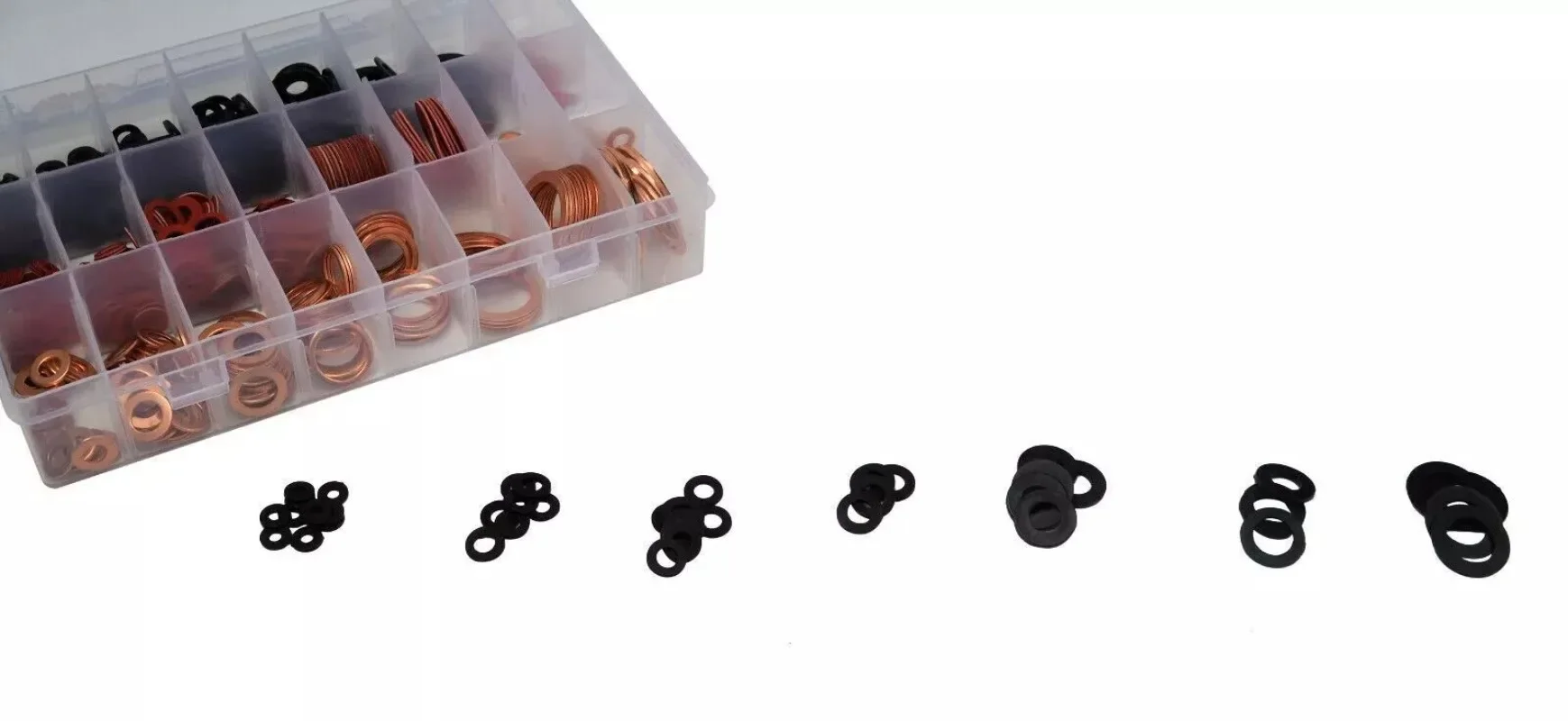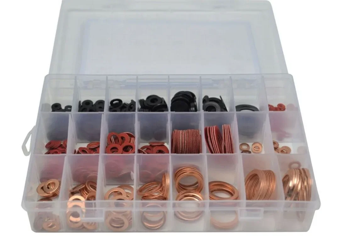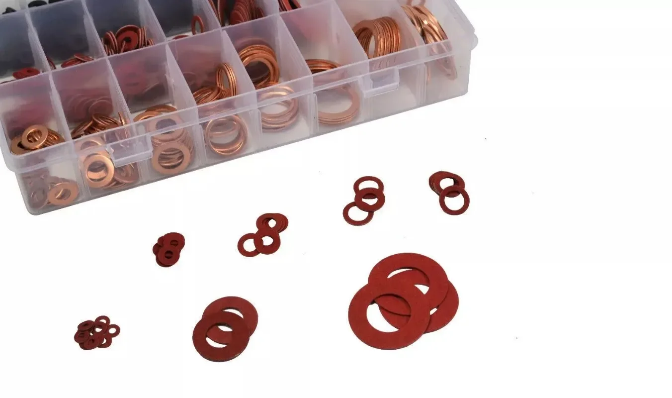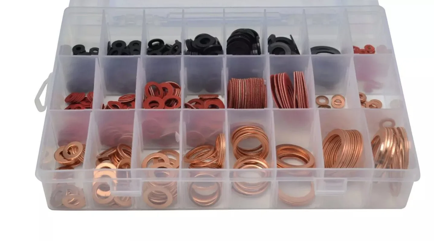 - Copper washers: corrosion-resistant and highly durable with sizes from M4 (8mm ID, 20pcs) to M22 (28mm ID, 10pcs), ideal for high-pressure or high-temperature environments.
