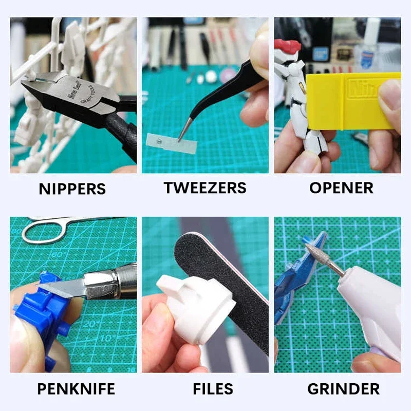 Enhance your crafting and DIY projects with this comprehensive craft tool set, model QCMX-01, featuring a variety of precision tools including an art knife, two utility knives (Type 1 and 2), scissors, tweezers, plastic nippers, pliers, polishing file, penknife, and tape in 12mm, 8mm, and 6mm widths. It also includes a 60ml spare bottle, mini cutting pad, paint tray, parts opener, and multiple storage boxes for organized workspace management. Crafted from durable plastic materials, this versatile set is perfect for household crafts, model assembly, and detailed DIY work, providing everything you need for precision, efficiency, and organization.