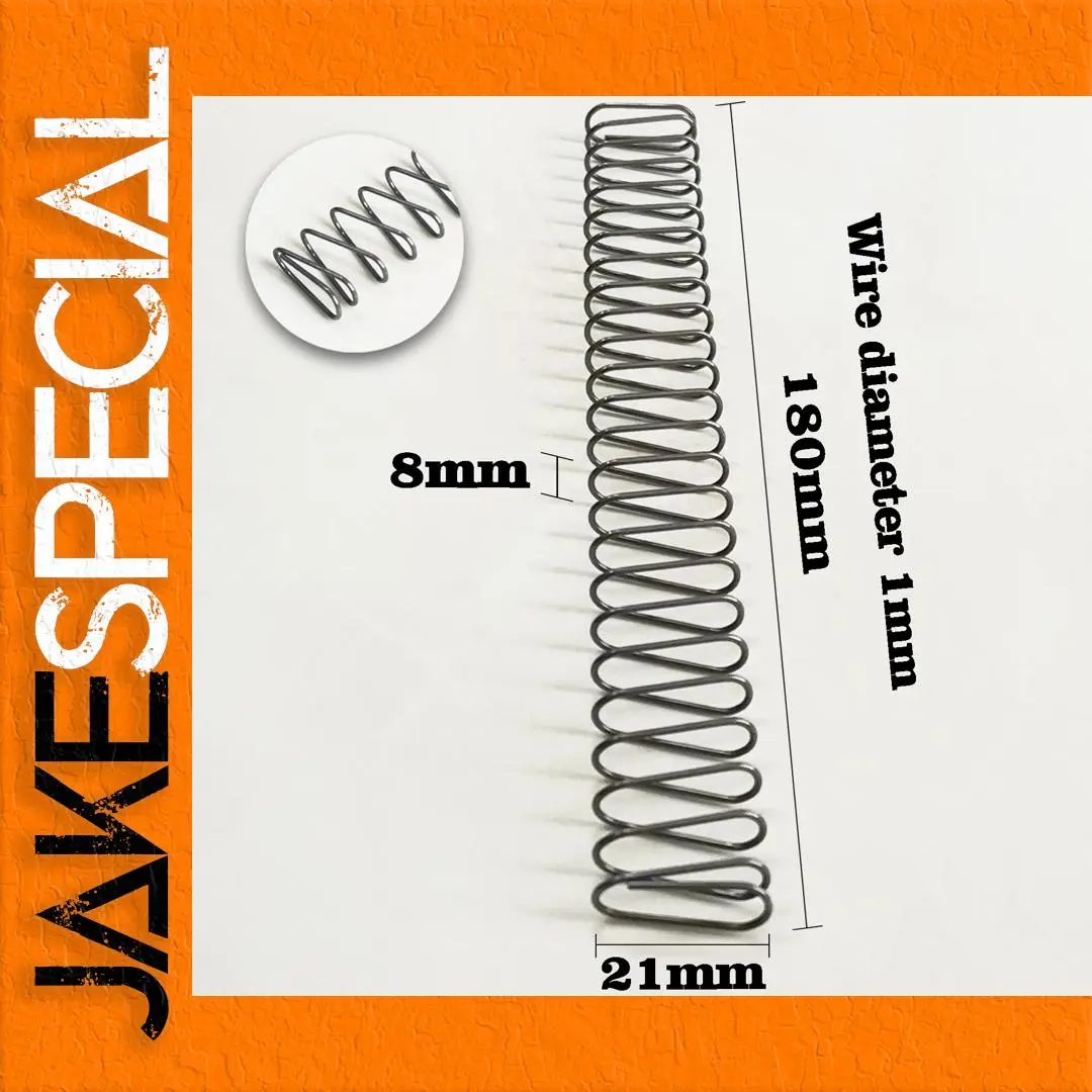 The compression spring is constructed from high-quality stainless steel, featuring a wire diameter of 1.0mm. Designed in a robust coil style, it has an overall length of 180mm and offers a shiny, metallic finish that enhances its industrial aesthetic. This spring is available in multiple lengths, including 1pcs, 3pcs, 5pcs, and 10pcs, allowing for customization to suit various applications. With its consistent spiral structure and multiple loops, this spring is engineered for effective compression, making it ideal for metalworking and diverse industrial uses.
