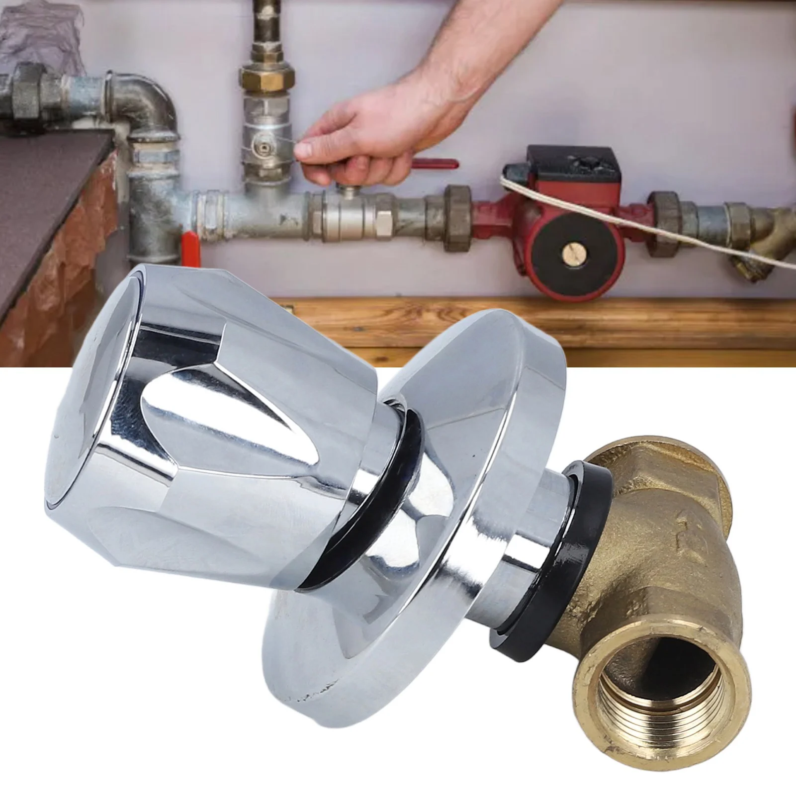 Prepare to experience seamless water control with this this concealed brass water valve, expertly crafted for durability and style. Featuring a shiny, polished metallic finish, the large hexagonally-shaped control knob offers a modern, eye-catching look that complements any sleek plumbing design. The brass main body, with its matte, gold-toned surface, exudes a refined, warm appeal. Designed for easy, intuitive operation, this high-pressure valve ensures reliable shut-off and flow regulation within your domestic water system. Its standard 1/2 inch female NPT threads provide compatibility with a wide range of plumbing setups. Perfectly suited for concealed installations, this valve combines aesthetic elegance with sturdy engineering, promising long-lasting functionality and a sophisticated touch to your home’s water management. Trust in its quality for a seamless upgrade to your plumbing system.