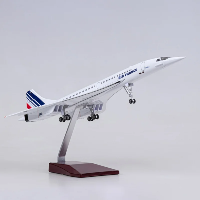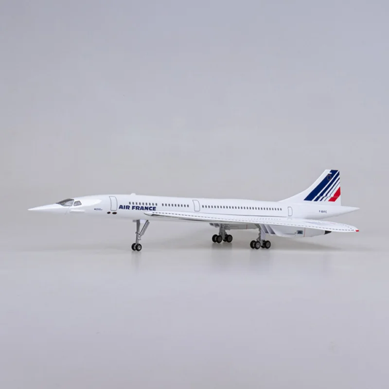 Immerse yourself in aviation history with this meticulously crafted 50cm scale Concorde Air France model. Designed with precision, its sleek white fuselage features authentic red, white, and blue airline markings on the tail fin, capturing the iconic look of the legendary supersonic aircraft. The delta-wing silhouette emphasizes its aerodynamic prowess, with a sharply pointed nose and smoothly detailed wings. The model boasts realistic landing gears and optional LED lighting, with voice-controlled cabin lights adding a touch of modern technology. Perfectly suited for collectors, this diecast resin masterpiece exudes sophistication and realism, making it ideal for display in a dedicated aviation or décor space. Its refined finish and authentic design make it a standout addition to any collection of legendary aircraft.
