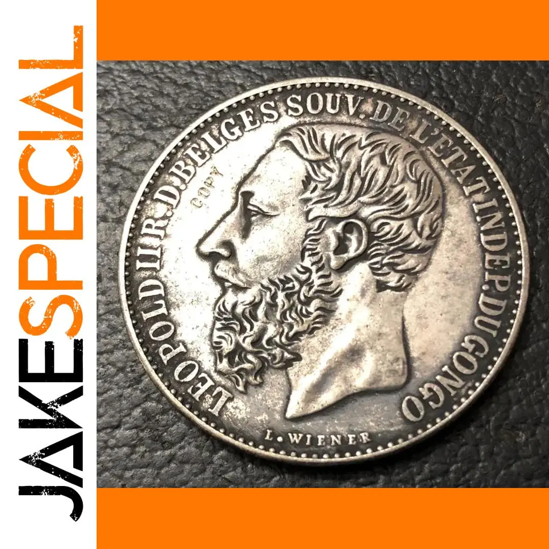 Step into history with this beautiful Congo Free State 5 Francs replica, meticulously crafted to evoke the vintage charm of the late 19th century. Its polished silver surface reflects elegance and authenticity, while the intricate engravings showcase a detailed profile of a distinguished historical figure. The finely etched facial features— including a prominent nose, full curly beard, and flowing styled hair—bring a lifelike quality to the piece. Encircled by a precise inscription in uppercase letters and framed with a delicate beaded border, this replica embodies both craftsmanship and historical significance. With a diameter typically between 24-30 mm, it offers a comfortable size for display or collection. This piece is ideal for history enthusiasts and collectors seeking a refined, antique-style artifact.
