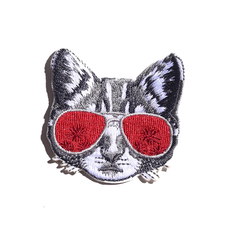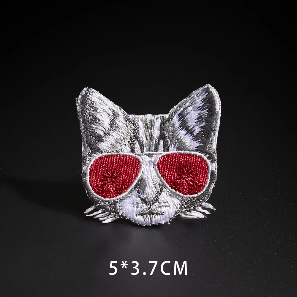 Adorn your clothing with this fun and trendy embroidered patch featuring a cat's head design complete with oversized red sunglasses. Measuring 5 cm in width and 3.7 cm in height, this eye-catching patch is crafted from durable non-woven fabric, ensuring it complements your style for years to come. The playful cat's face, with intricate embroidery that highlights its gray and white fur, transforms any outfit instantly. Whether you choose to iron it on or sew it securely in place, this patch is perfect for personalizing jackets, jeans, and bags, allowing you to express your unique personality effortlessly.