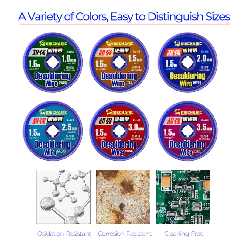 - Available in six diameters—1.0mm, 1.5mm, 2.0mm, 2.5mm, 3.0mm, and 3.5mm—to meet various desoldering requirements with high precision.