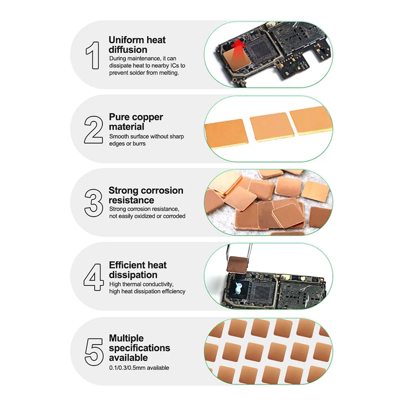 - Includes 50 copper heatsinks made of high-conductivity copper, ensuring excellent thermal transfer and heat dissipation for phone chips during repairs.