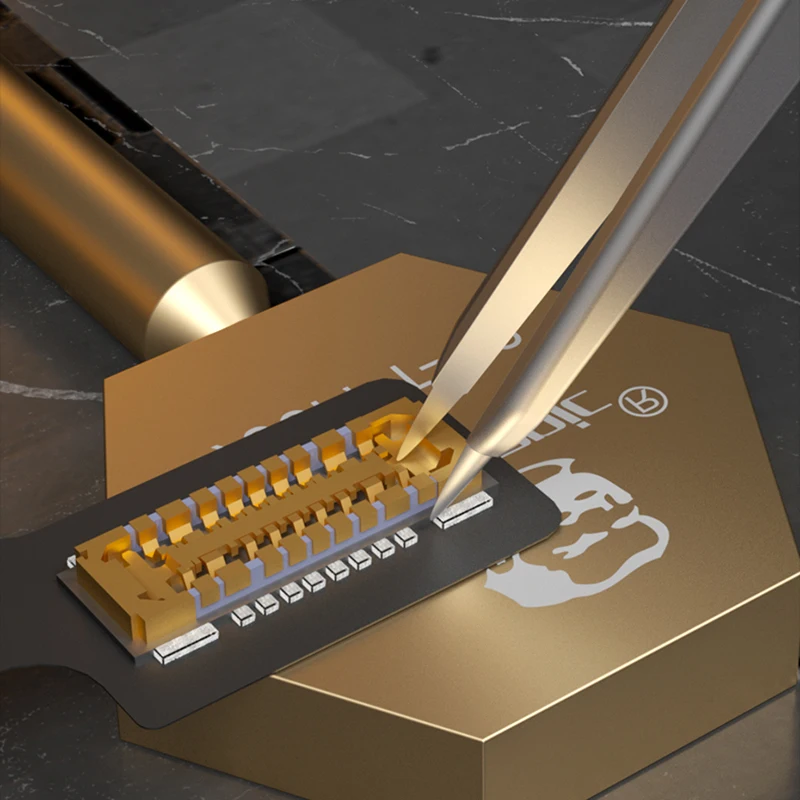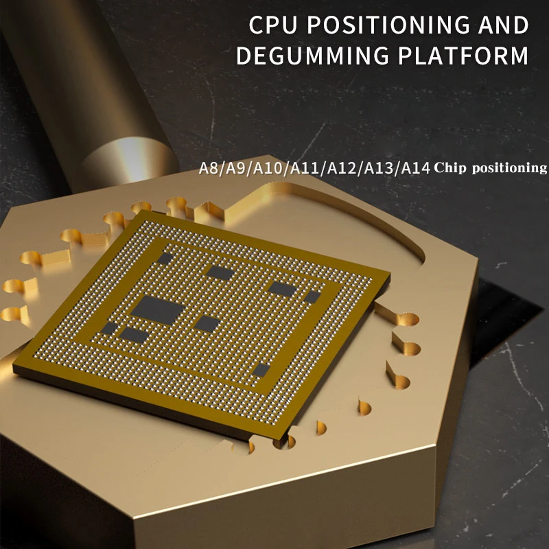 Experience precise and efficient CPU chip removal with this MECHANIC Pure Copper Heating Platform, model 900M-T-C9, designed for iPhone A8 through A14 models. Crafted from 99% pure copper for rapid heat transfer, it offers fast heating, accurate positioning, and de-gluing capabilities. Compatible with 936 series soldering irons, this professional-grade platform features a sleek, reflective surface with a minimalist square design, clean edges, and perforated edges for uniform heat distribution. Perfect for advanced phone repair, it ensures durable, high-performance operation, making chip desoldering faster and more controlled to help you achieve professional repair results with confidence.