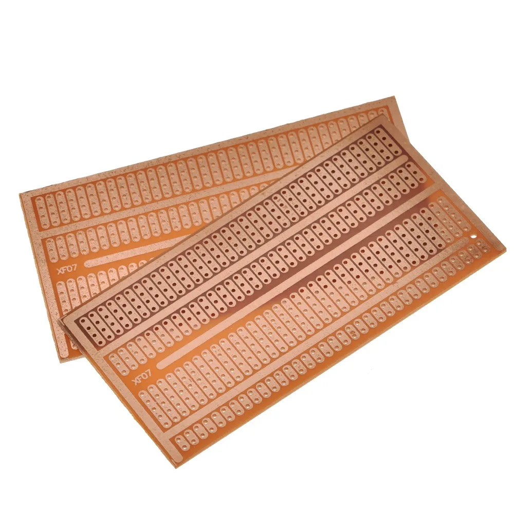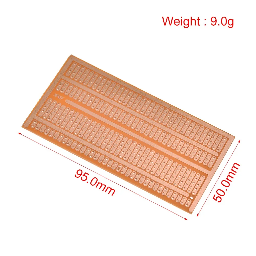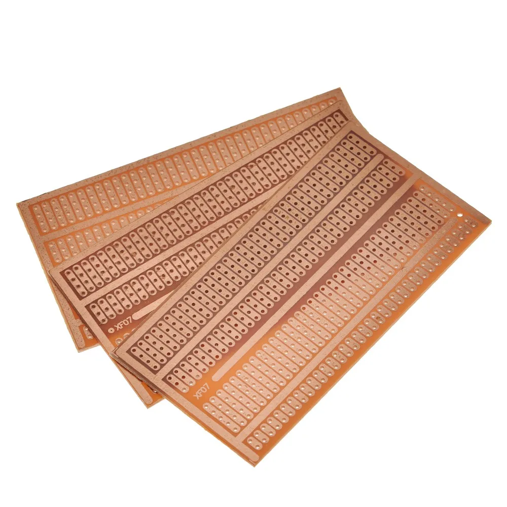 This set of prototype paper plates measures 5×9.5 cm and is made from single-sided copper PCB material, ideal for DIY electronic projects. Each plate features precisely etched, smooth copper surfaces with two or four connected holes of about 1mm diameter, spaced 2.54mm apart for standard through-hole components. Designed for point-to-point soldering, these plates are perfect for creating switches, sensors, or circuit prototypes compatible with STM microcontroller applications. Available in packs of 1, 5, or 10 pieces, they offer a sleek, industrial aesthetic with polished, reflective copper finish, sharp edges, and well-defined pathways, perfect for high-tech DIY enthusiasts seeking reliable circuit development tools.