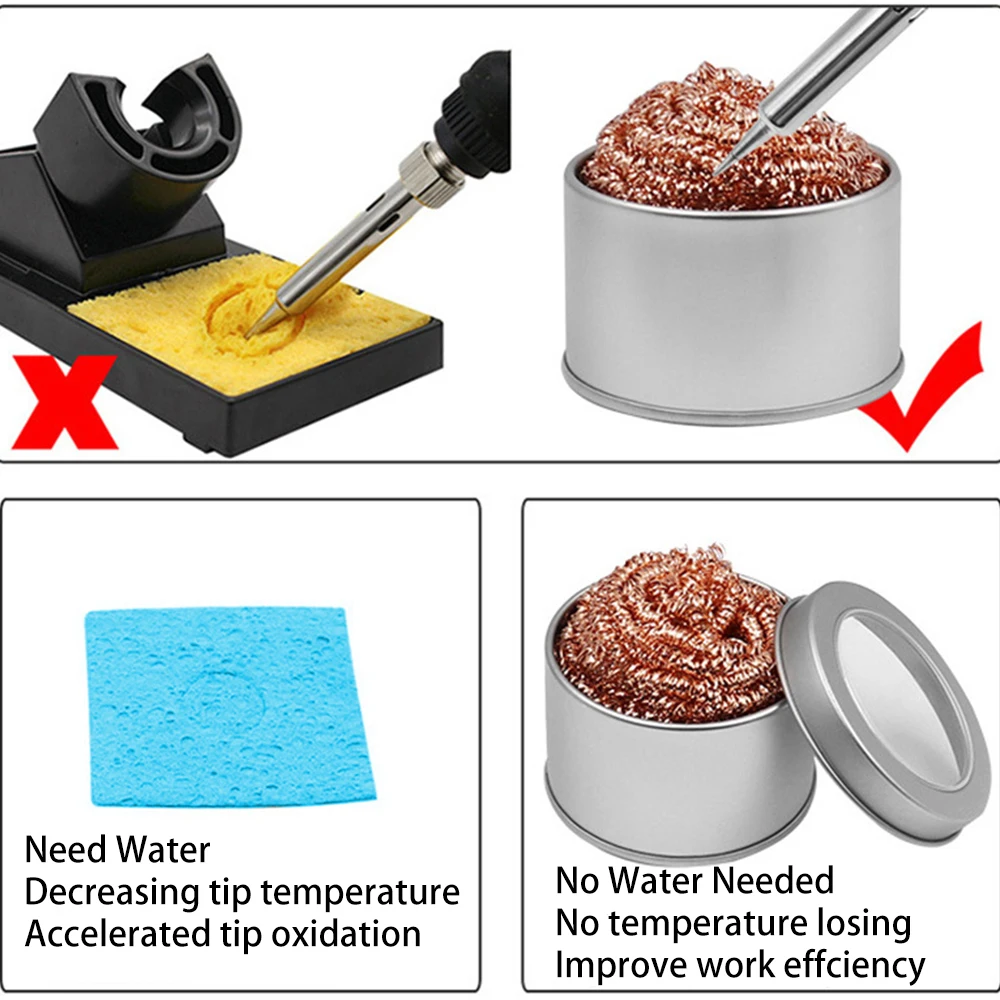 - Made with high-quality copper wire, these balls are slightly compressed with tangled surfaces to boost cleaning power through multi-point contact during soldering tip maintenance.