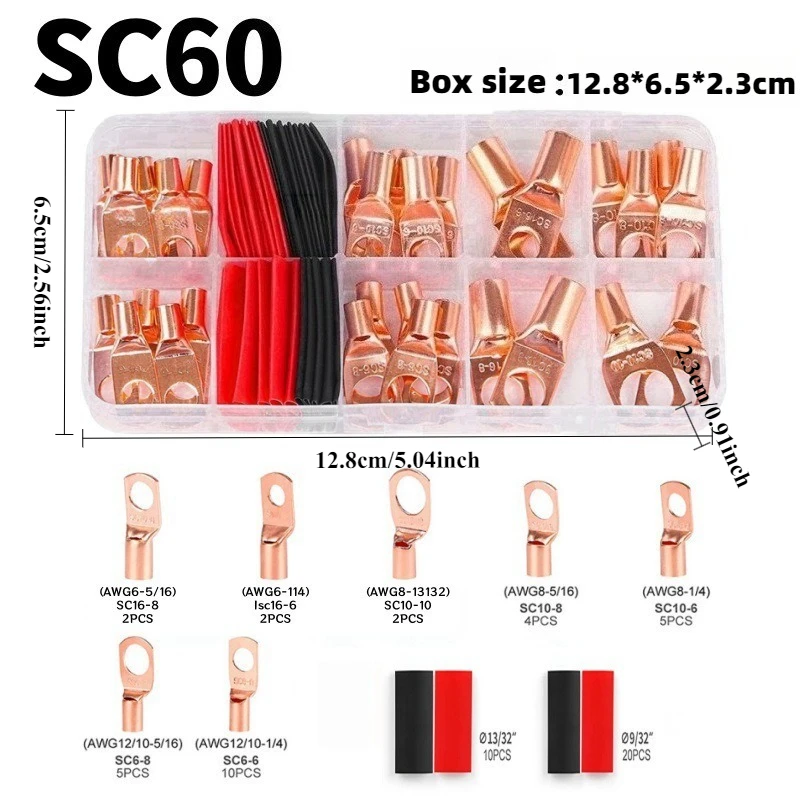 - The set includes 60, 100, or 130 copper crimping terminals, suitable for various electrical wiring tasks and ensuring ample supply for your projects.