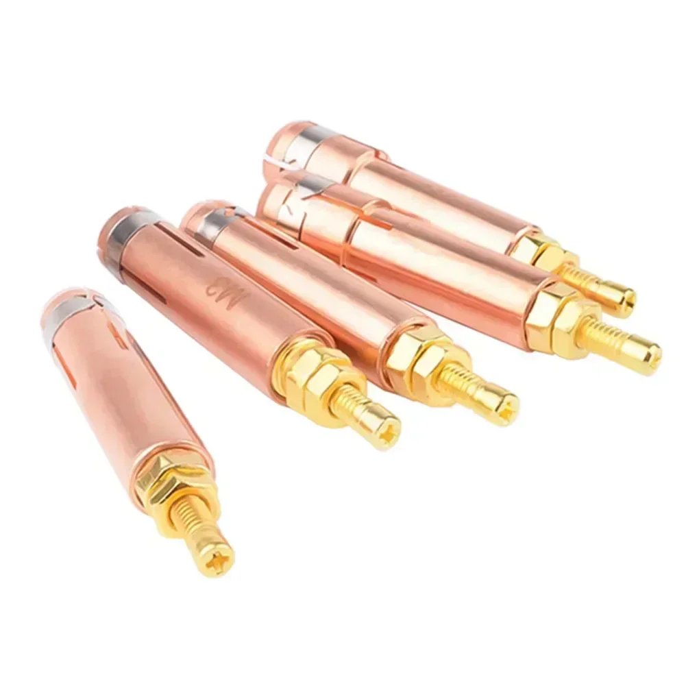 - The metallic body exhibits a polished, copper hue with a subtle metallic sheen, complemented by a silver-colored ring at the base that ensures stable, reliable engagement in your welding torch.