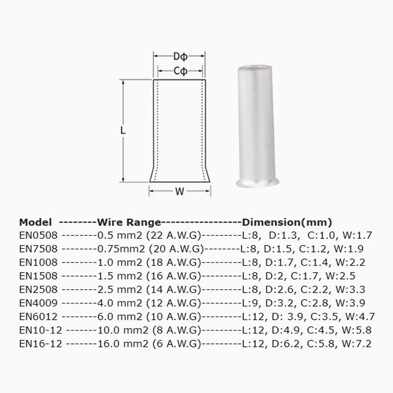 - Each size features specific dimensions: lengths range from 8mm to 12mm, diameters from 1.3mm to 6.2mm, ensuring perfect compatibility with your wire types.