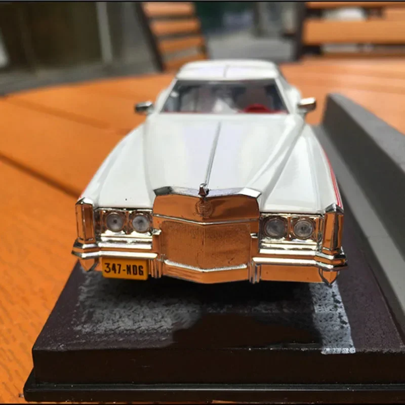 - This 1/43 scale replica features a vintage-inspired design with smooth, rounded edges and a curved roofline that emphasizes its classic luxury appearance.