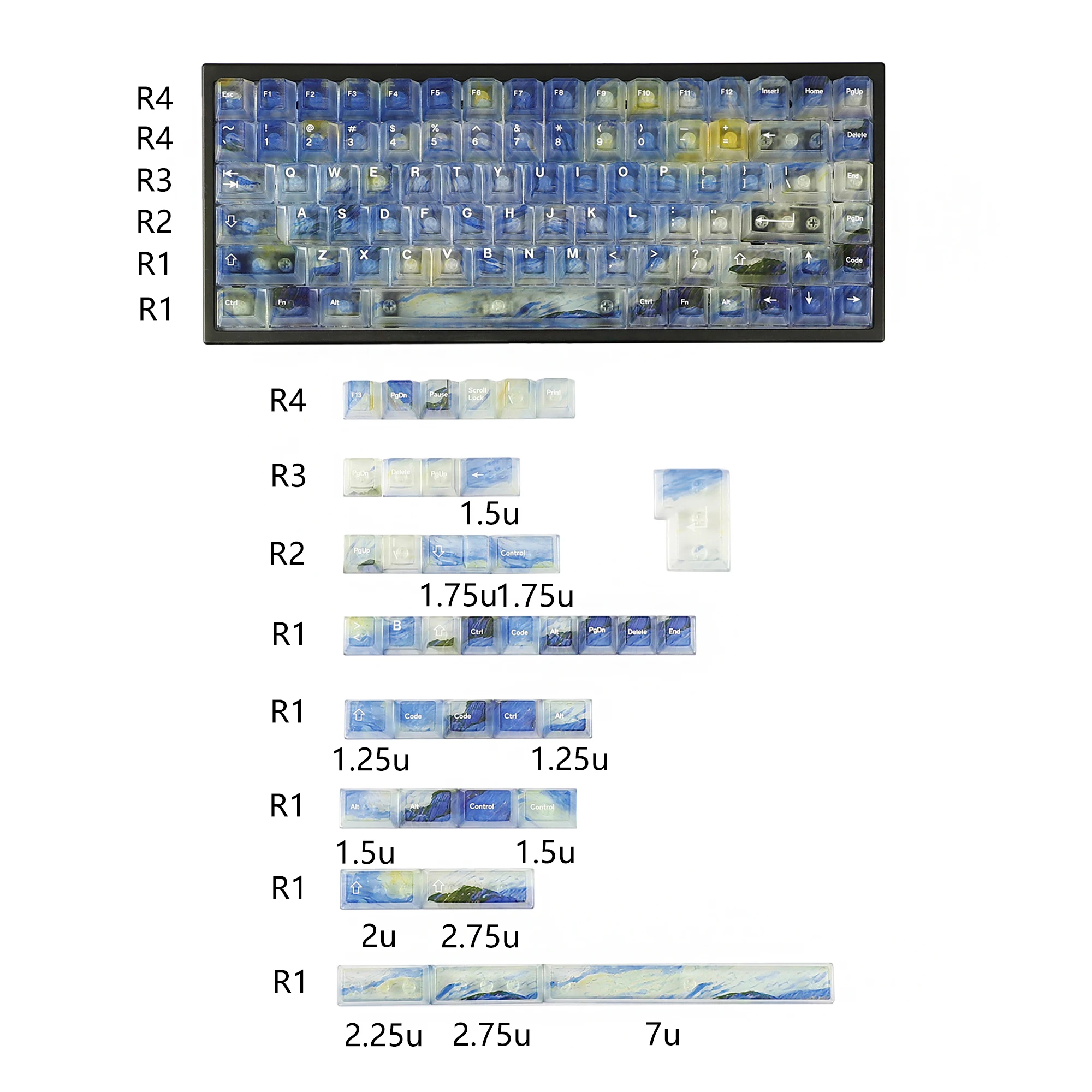Keys features of the this YMDK Frosted Clear Starry Sky Keycaps Set