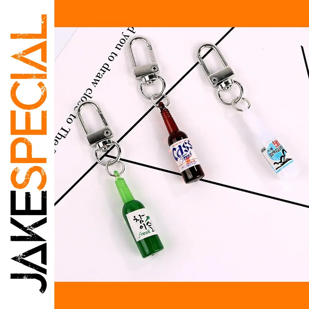 Imagine adding a fun and trendy accessory to your everyday items that reflects your love for unique collectibles. This fashionable couple-themed keychain features three miniature plastic bottles, each approximately 4 cm tall, crafted with vibrant colors and detailed labels that mimic real beverage containers. The green bottle resembles a fresh beverage, the brown one mimics a soda or beer, and the clear or white bottle suggests water or milk. Made from durable zinc alloy with sleek silver split rings and clasps, this accessory combines modern style with playful charm. Perfect for attaching to keys, bags, or as a gift, it embodies a trendy, wedding-inspired design that elevates your accessory game while showcasing your personality and good taste.