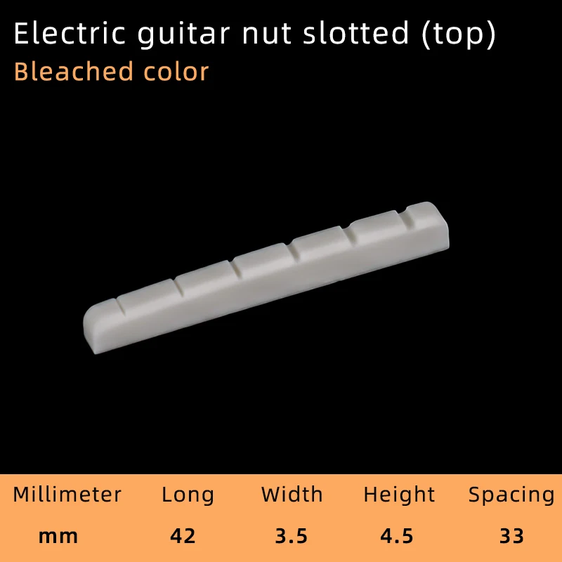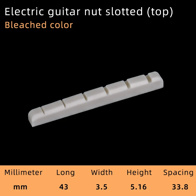 Transform your electric guitar's performance with this high-quality guitar slotted nut. Crafted from durable cow bone, it offers exceptional resonance and clarity that enhances sound quality. Perfectly designed to fit various guitar models, including Fender and Gibson LP series, this nut ensures optimal string alignment for improved playability. Imagine the satisfaction of strumming away on your instrument with a setup that feels just right under your fingers. Its specifications, including sizes of 42X3.5X4.5mm and 43X3.5X5.16mm, provide versatility that meets your playing style. Invest in this upgrade and experience the difference in your sound.